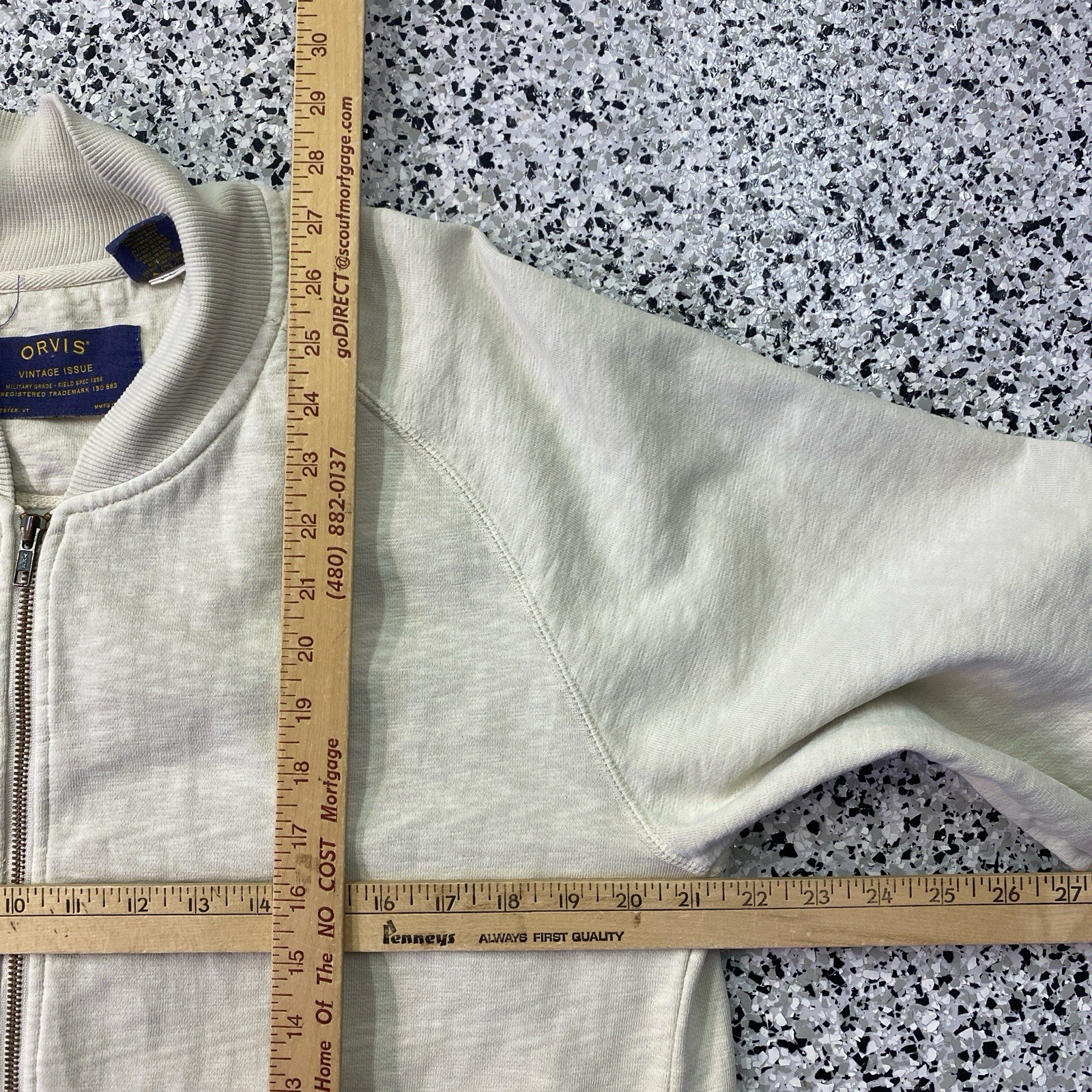 как выглядит Orvis Vintage Issue Sweatshirt Jacket Mens Medium Beige Zip Up Cream Beige фото