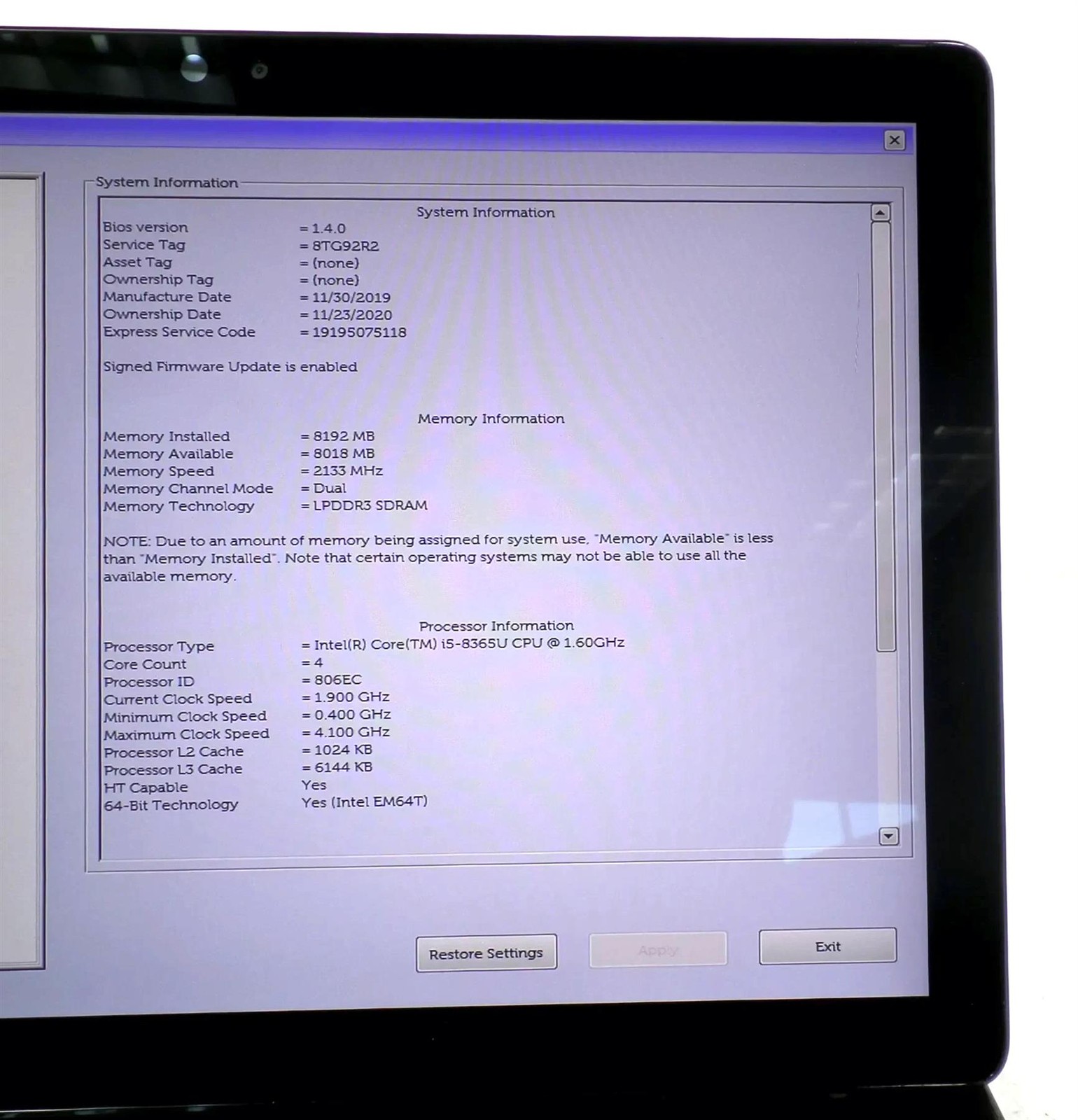 Процессор: Core i5-8365U 1.60GHz