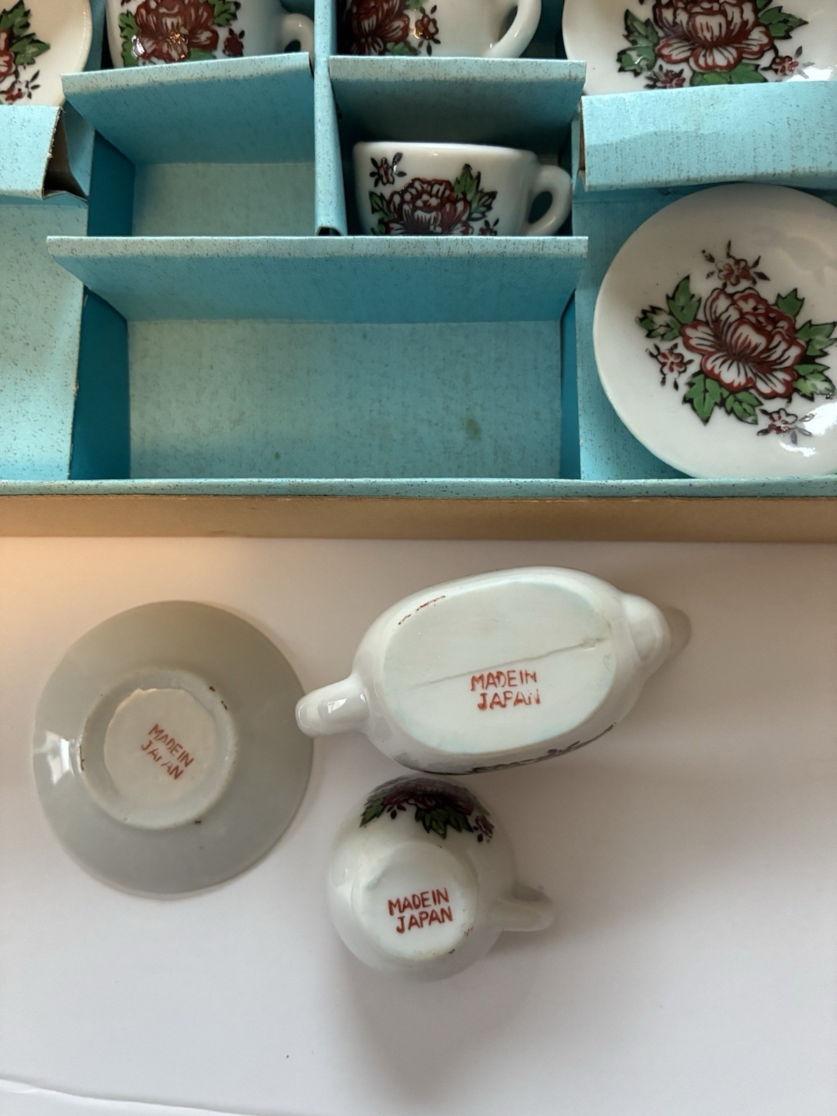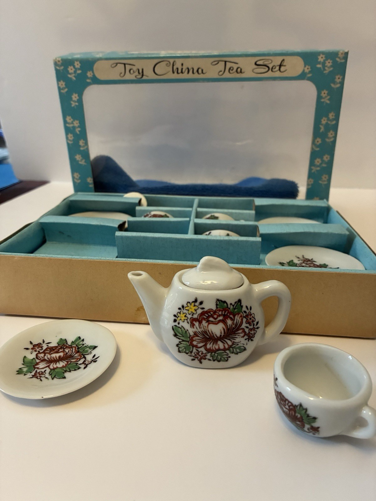 Vintage Toy China Tea Set Service for 4 13 Piece Original Box Floral