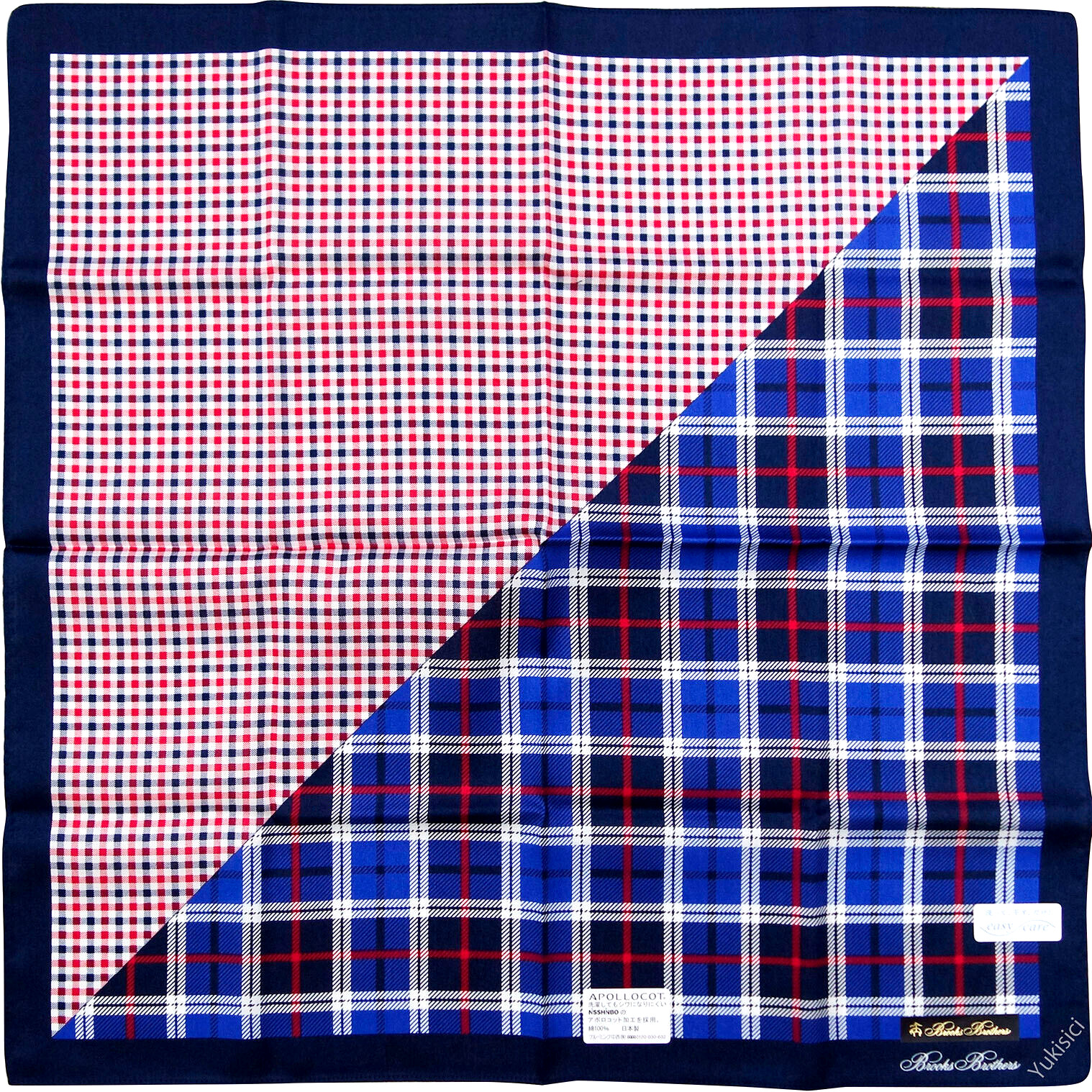 Brooks Brothers Men JP Handkerchief 2 Tartan Easy Care Cotton Blue Red 50cm New