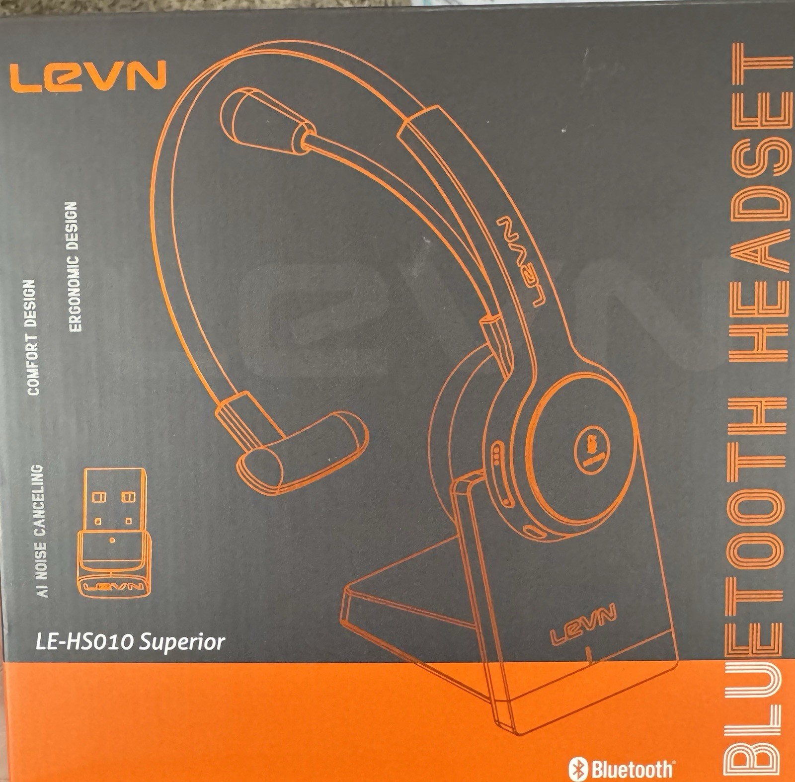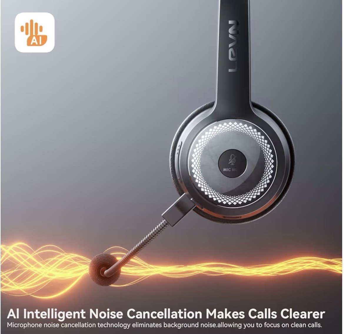 LEVN Wireless Headset with Mic Charging Base Noise Cancelling Mute Button