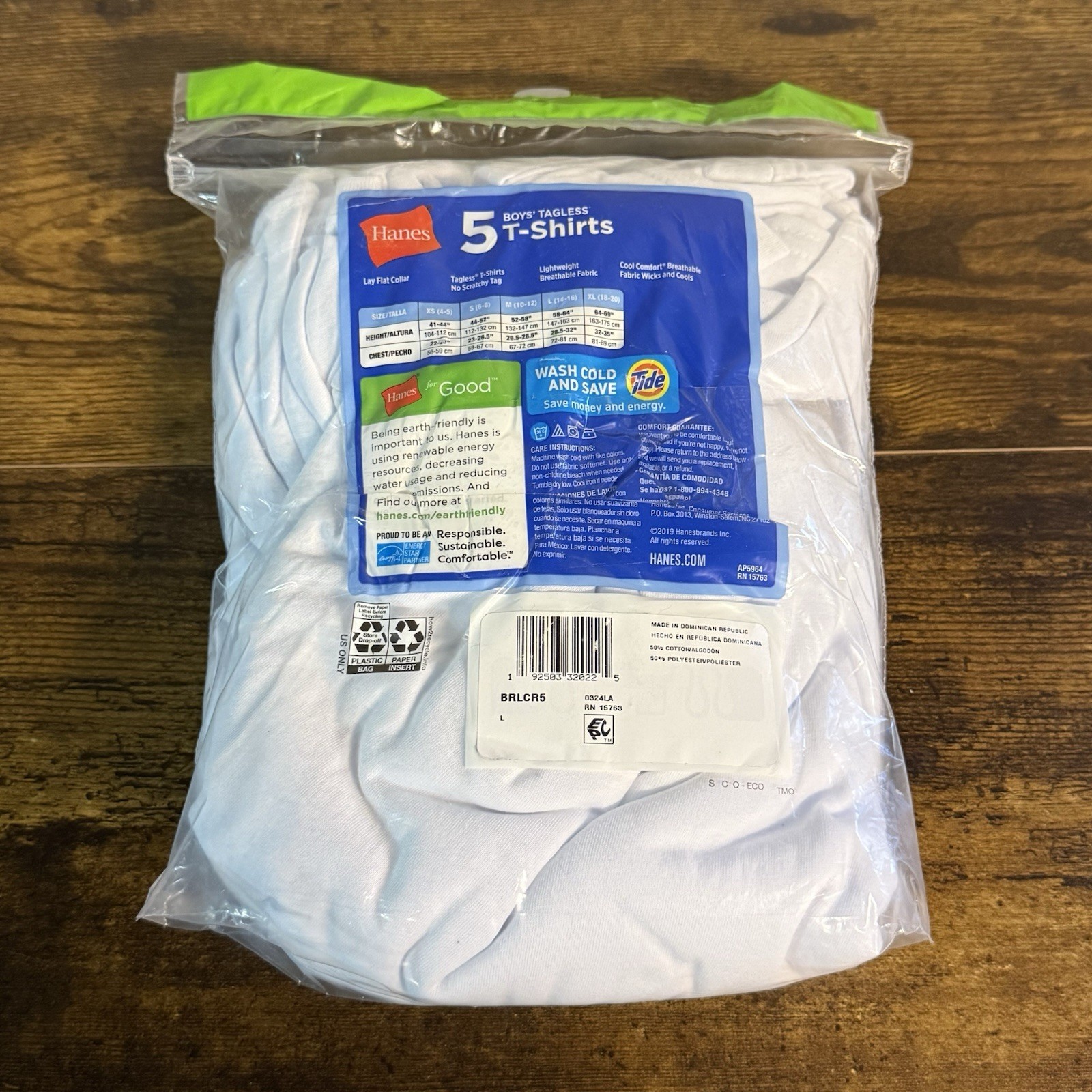 как выглядит NEW - Hanes Boys Tagless T-Shirts - Large - White - 5-Pack фото