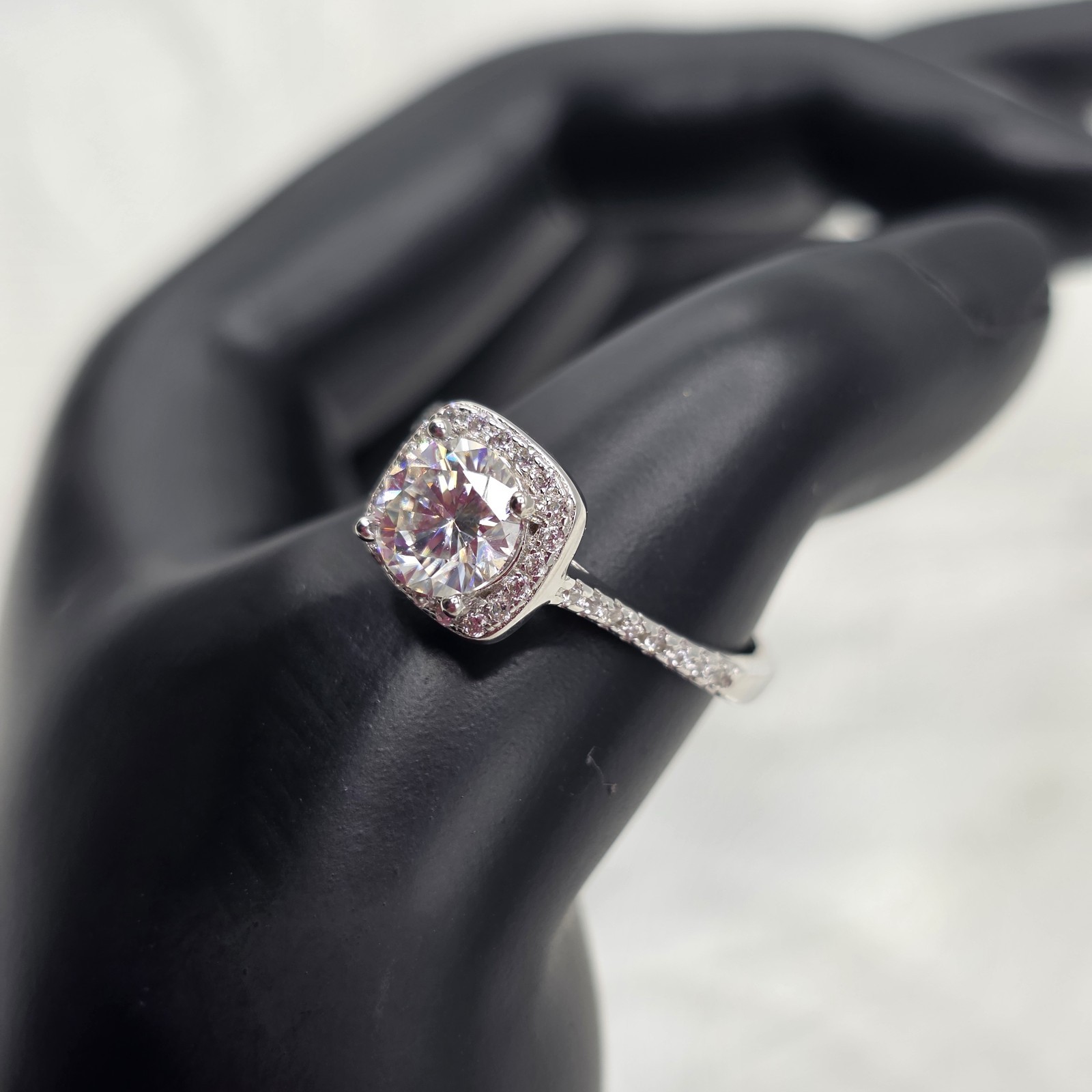 Size 7 - Moissanite Engagement Square Ring - 1ct 925 Sterling Silver - Classy