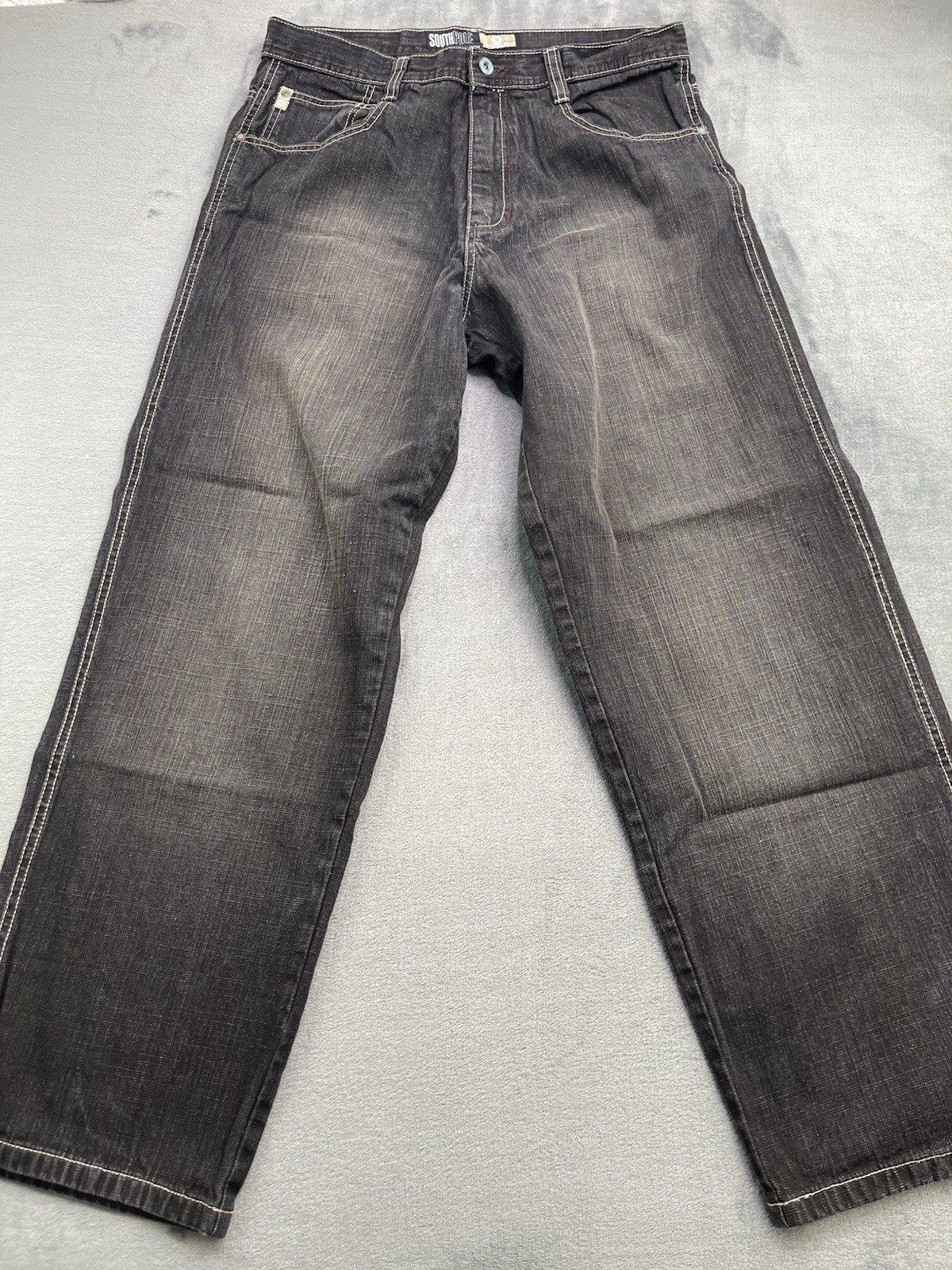 как выглядит Southpole Y2K Grail Brown Tab Black Wide Leg Baggy Loose Jeans Size 34x31 фото