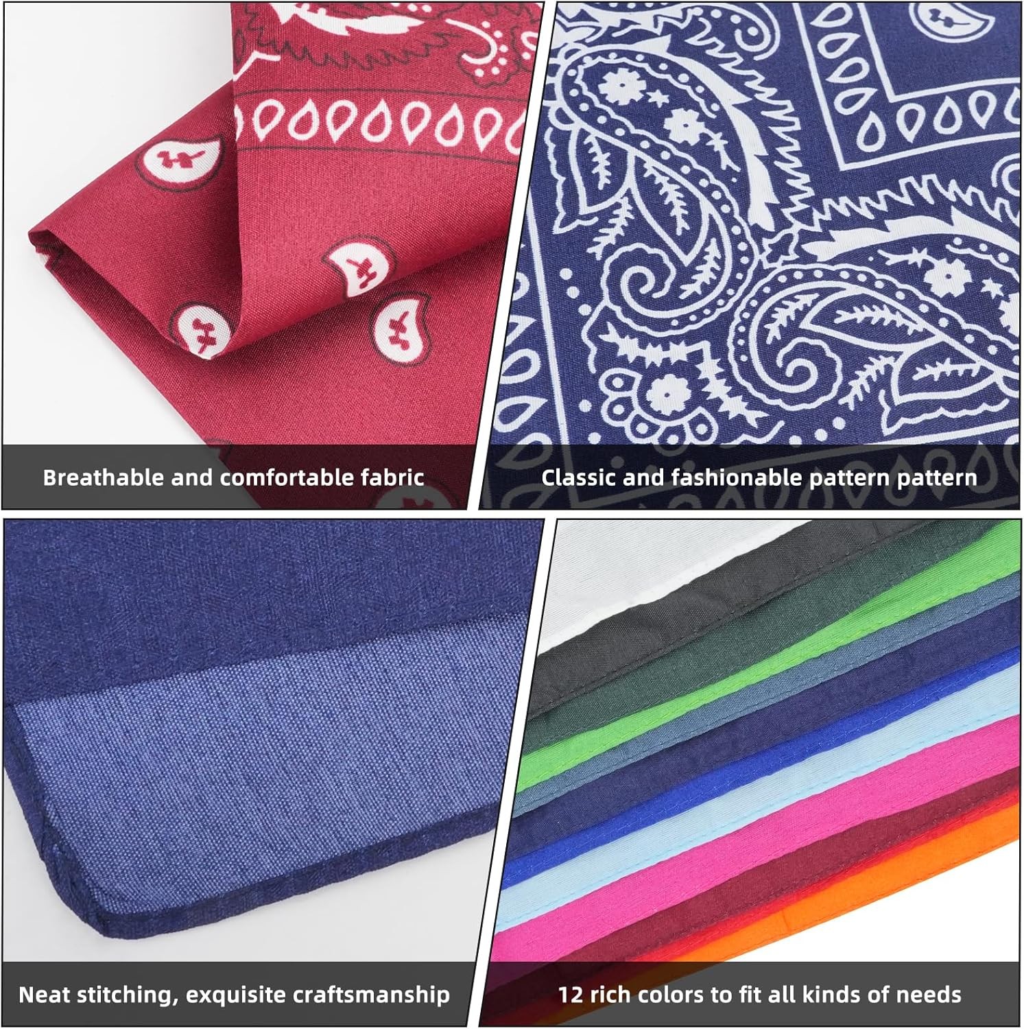 JINGIHE 12 Pcs Bandanas for Women Men, 22 x 22 Inch Multi-Purpose...