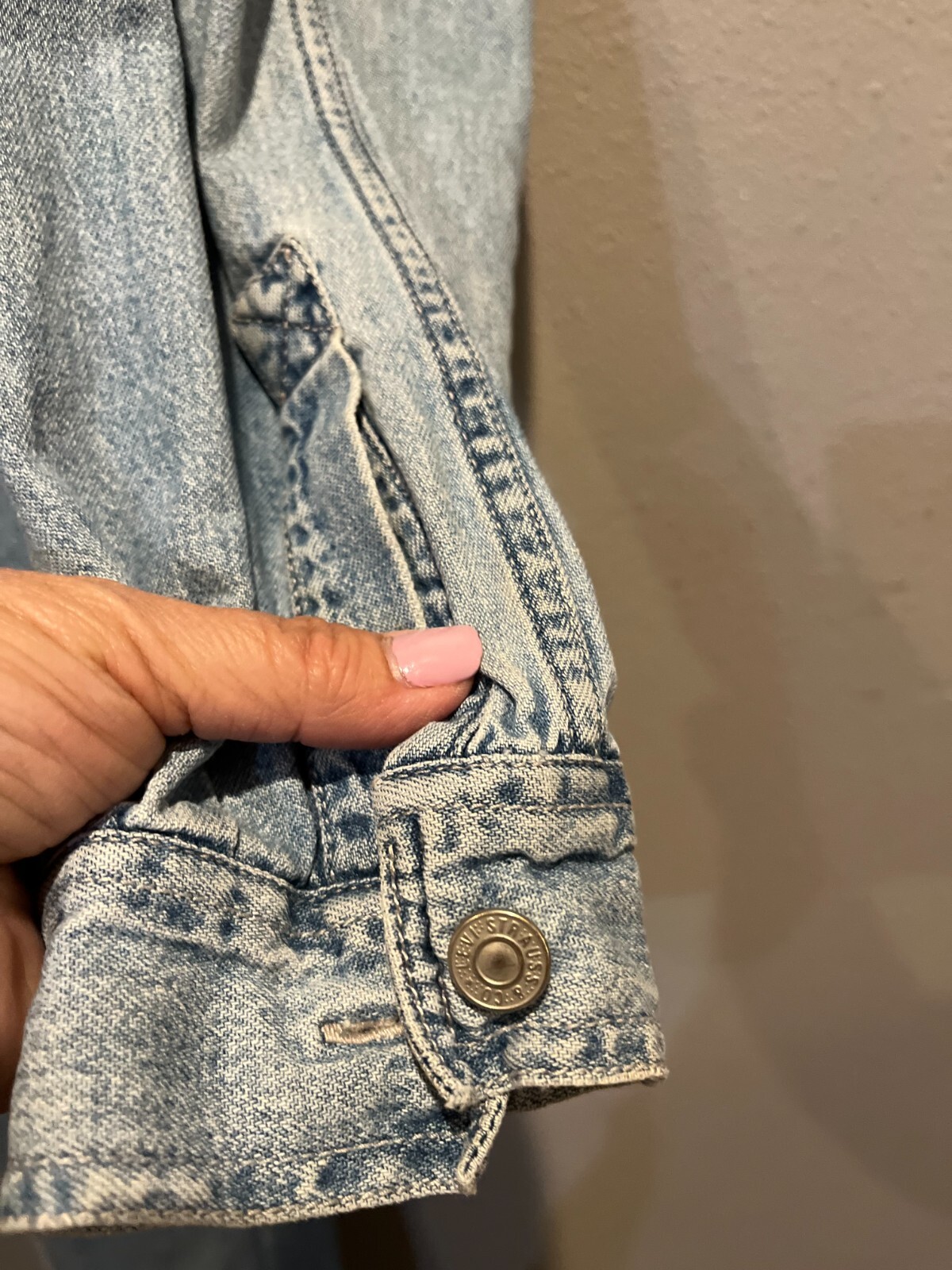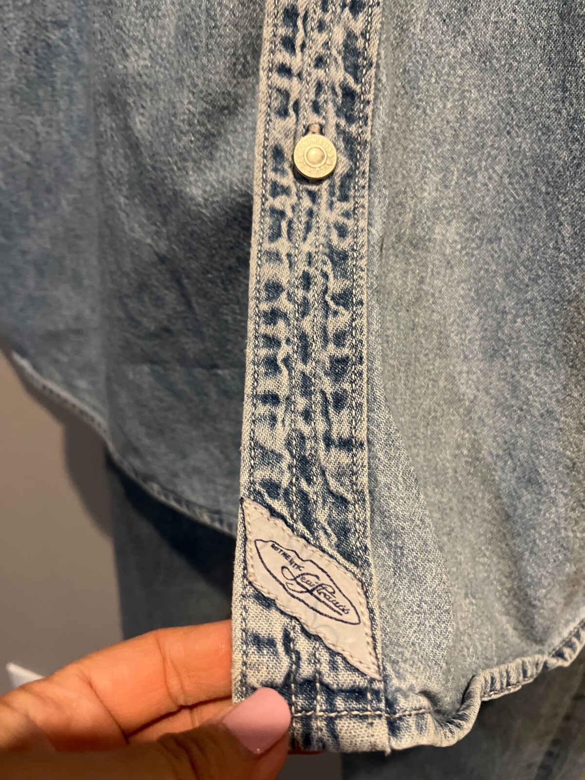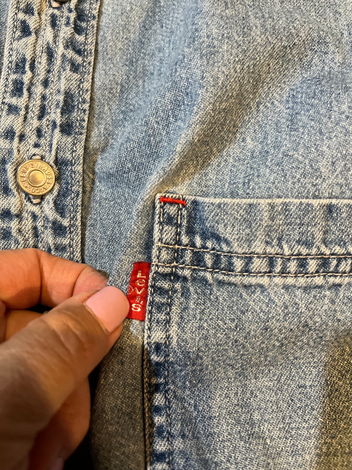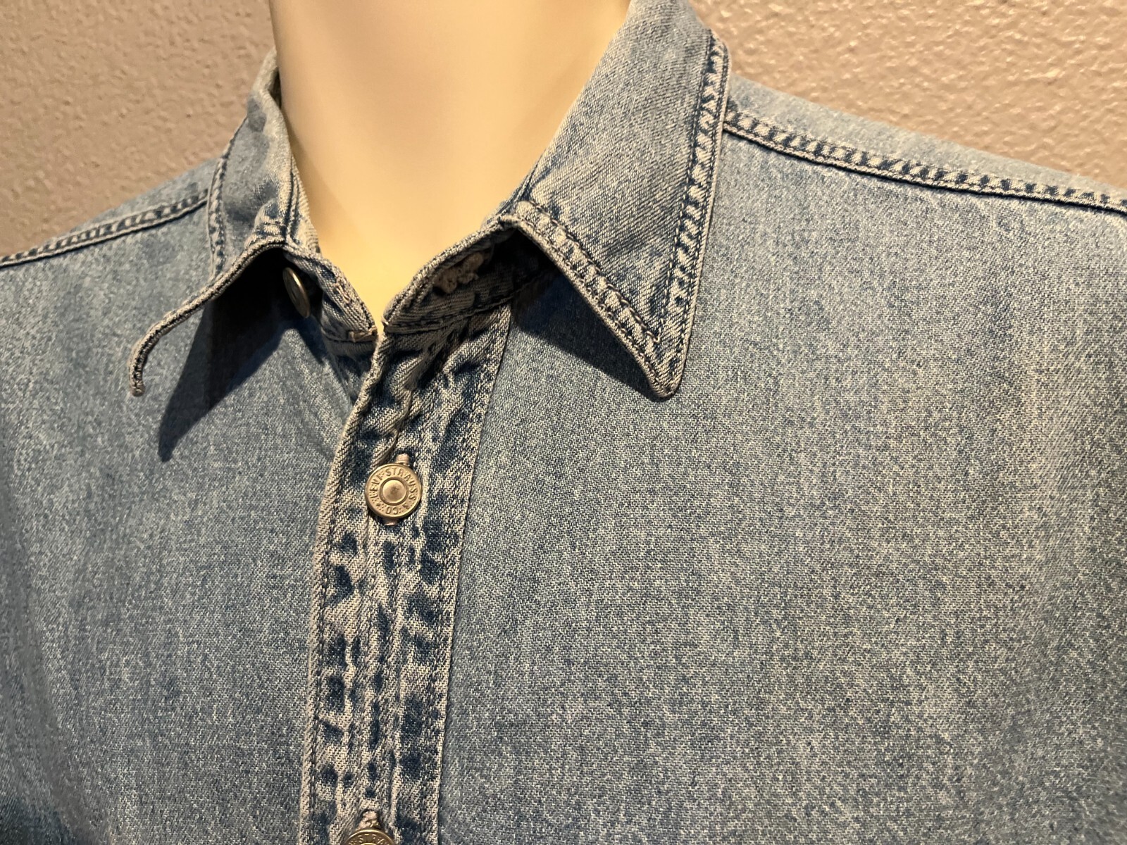 как выглядит Mens Vtg 90s LEVIS Blue Cotton Denim Metal Buttons Long Sleeve Shirt Size L фото