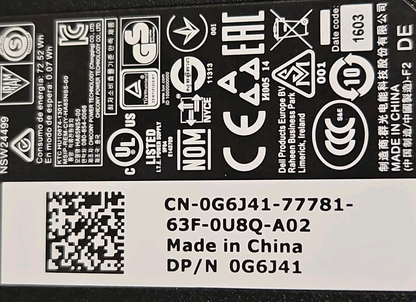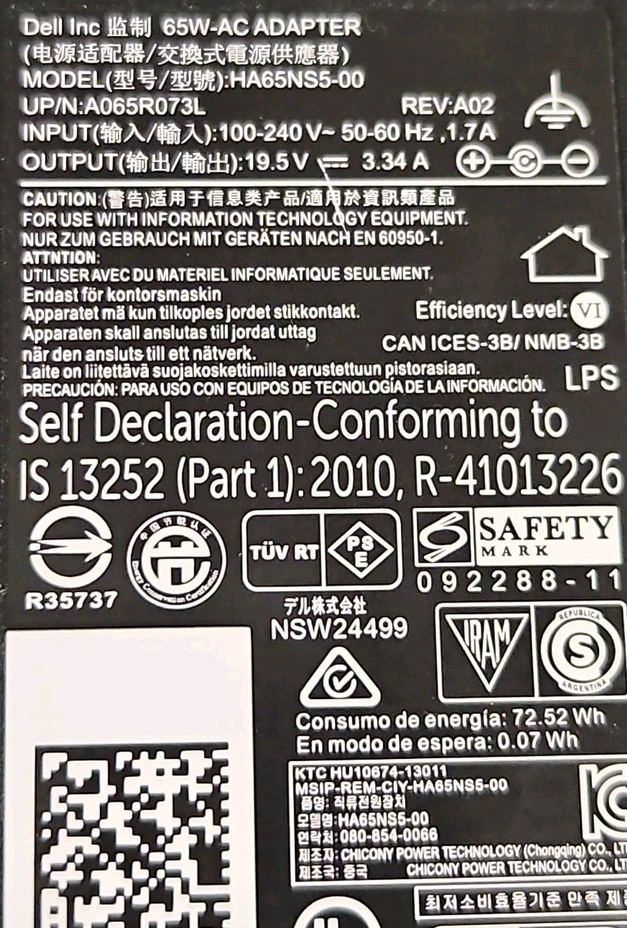 Dell compatible model: FA65NE1-00, PA-12, PA-2E, A065R039L, 09RN2C