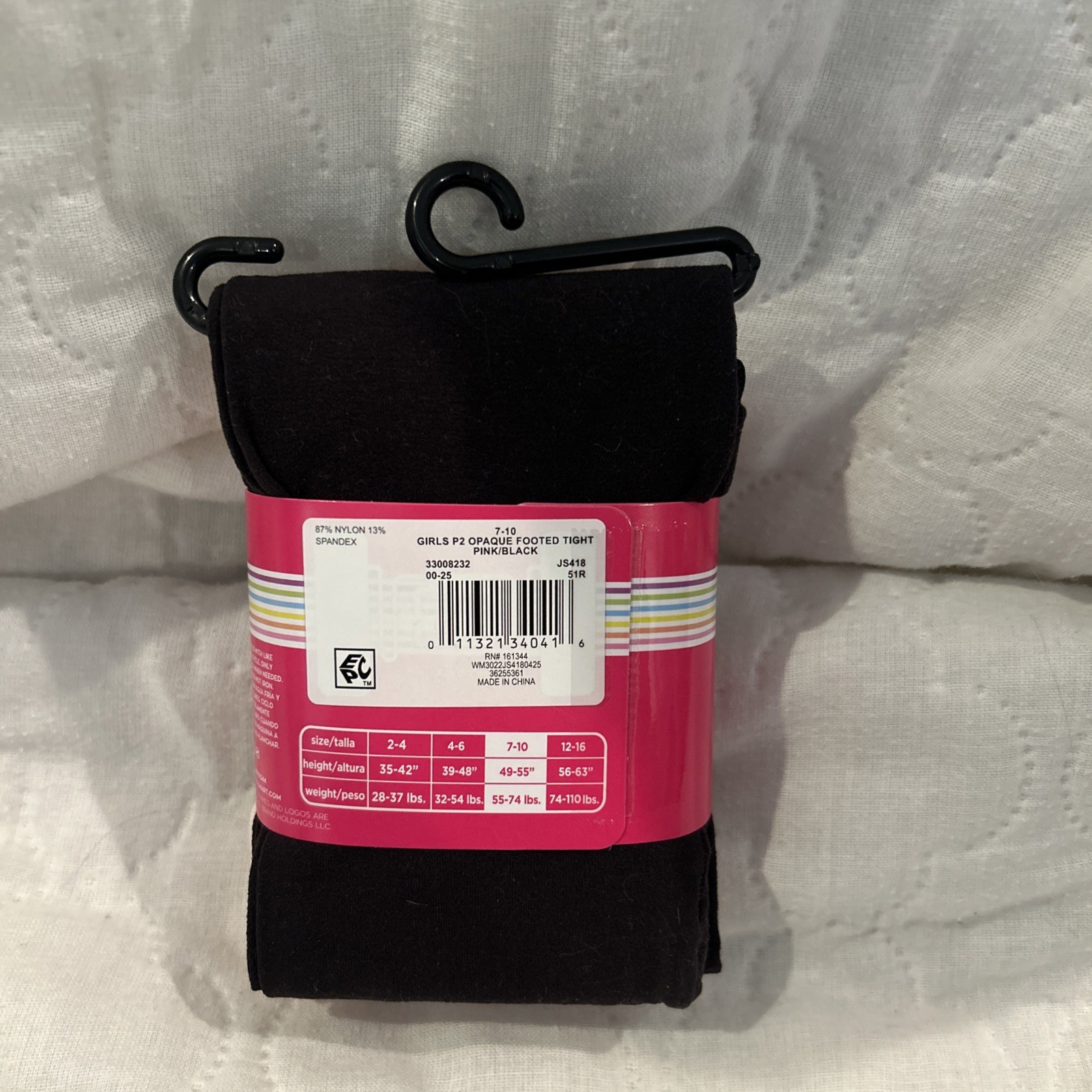 2 Pair Justice Footed Tights - Kids Pink and Black M 7-10 Dance Gym NWT