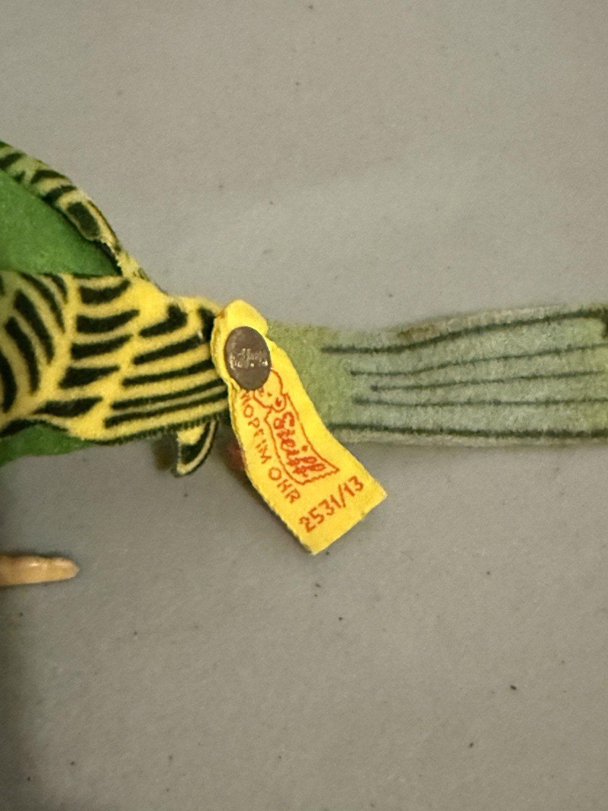 Vintage Steiff Budgie Franzi Bird Velvet With Tag Button Parakeet Green