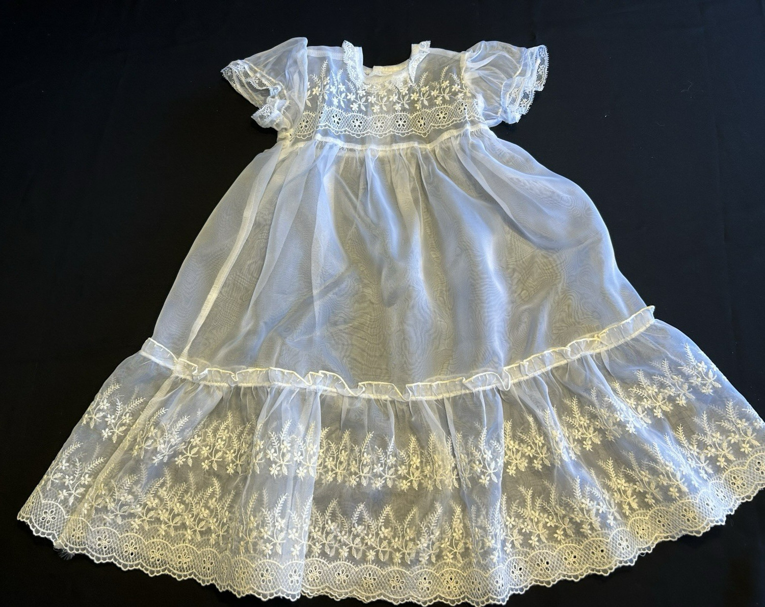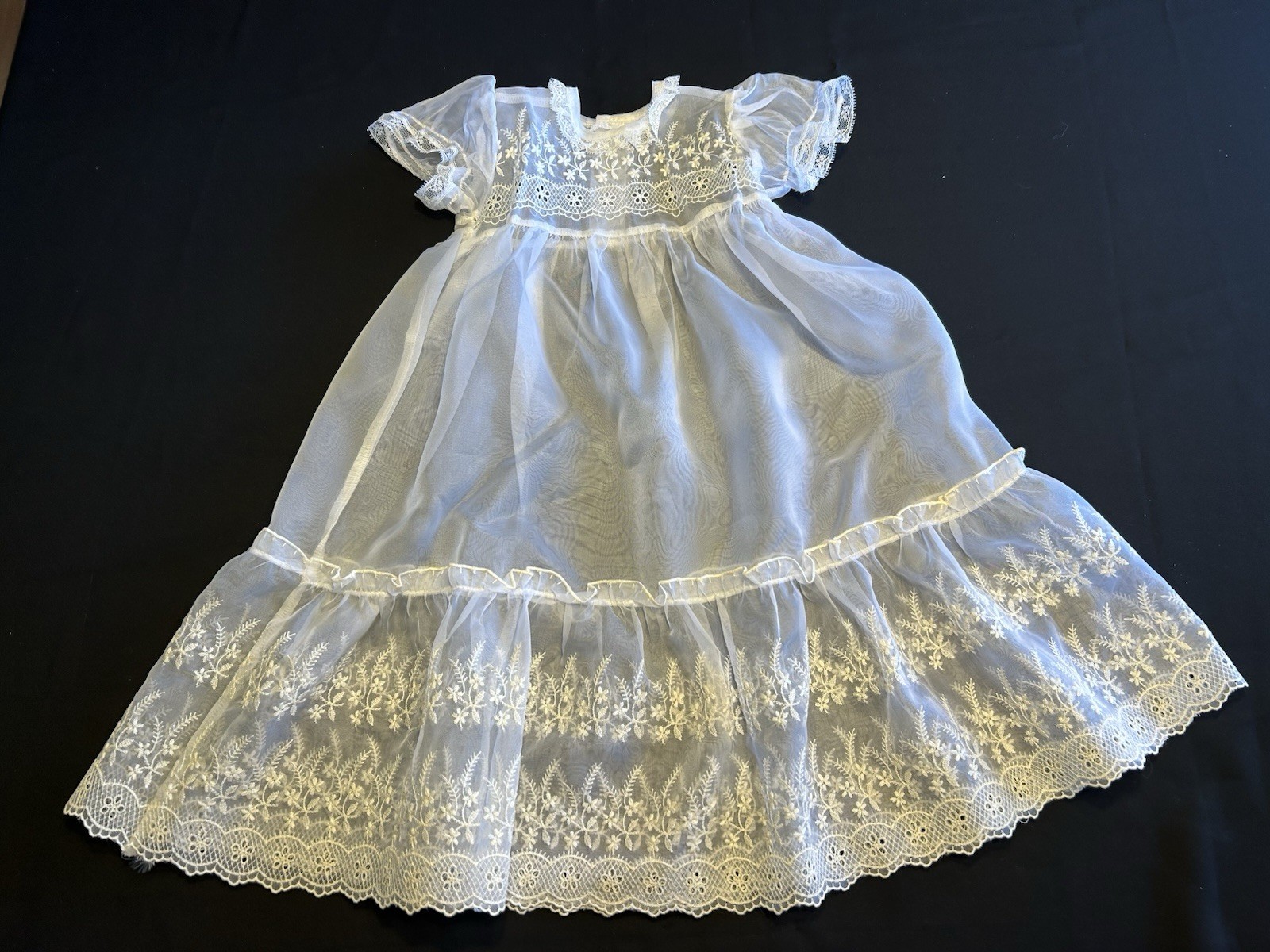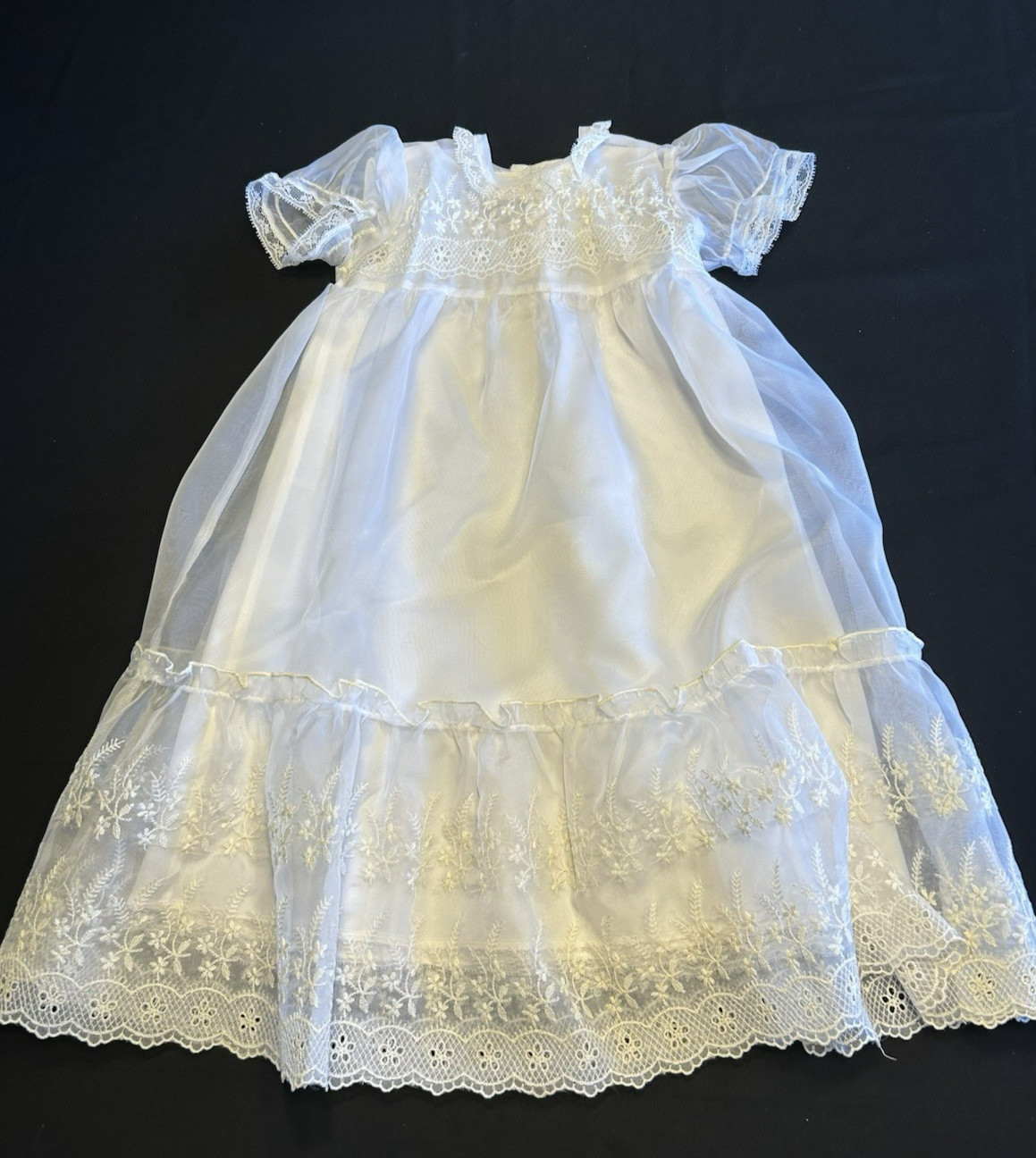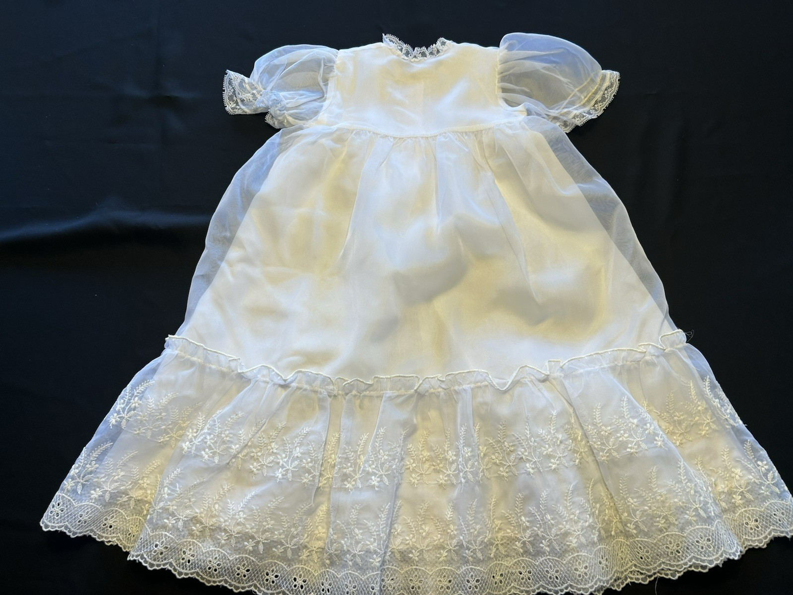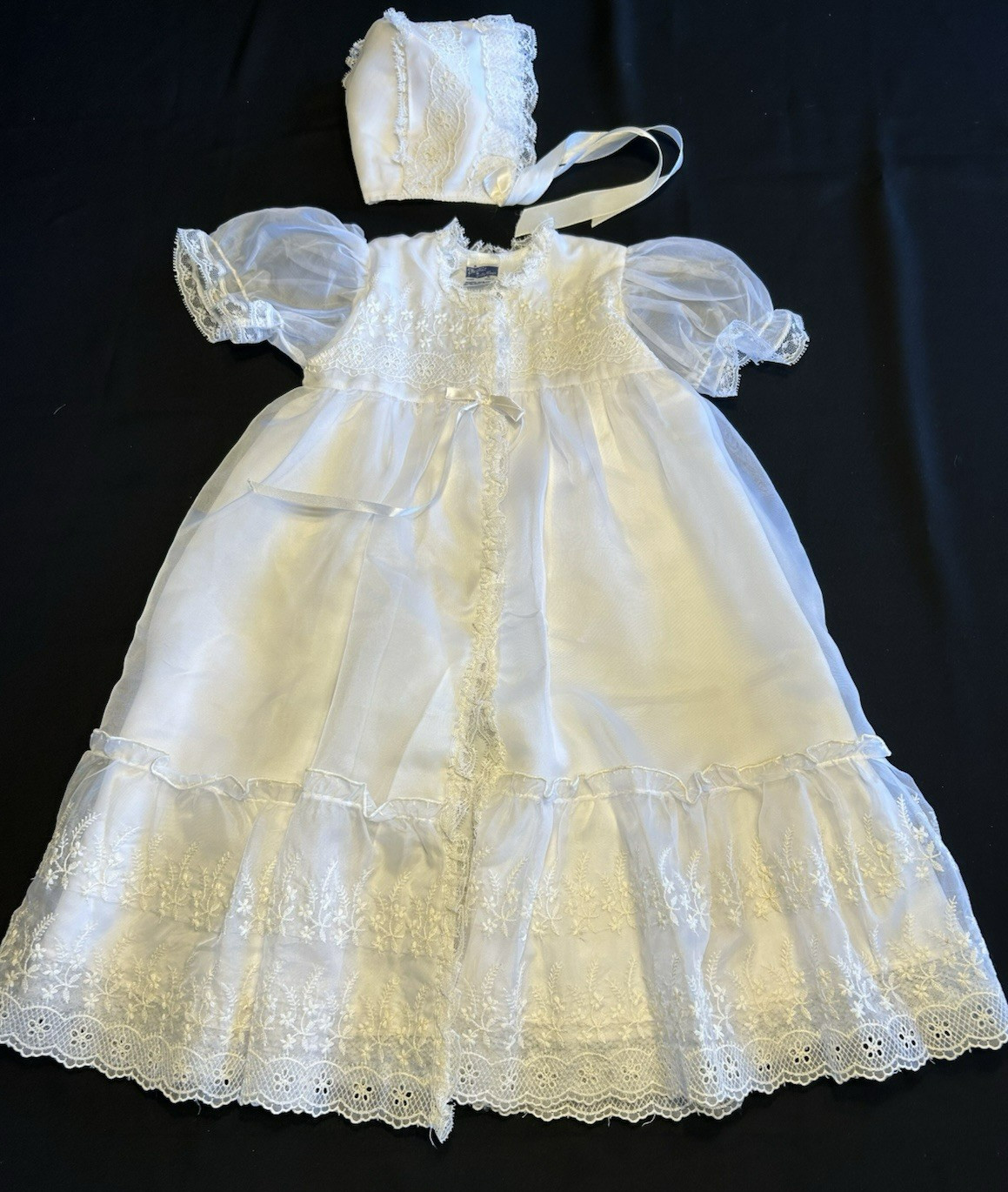 Vintage Christening Set Lined Coat Hat Dress Slip Nylon Washable No Flaws Doll