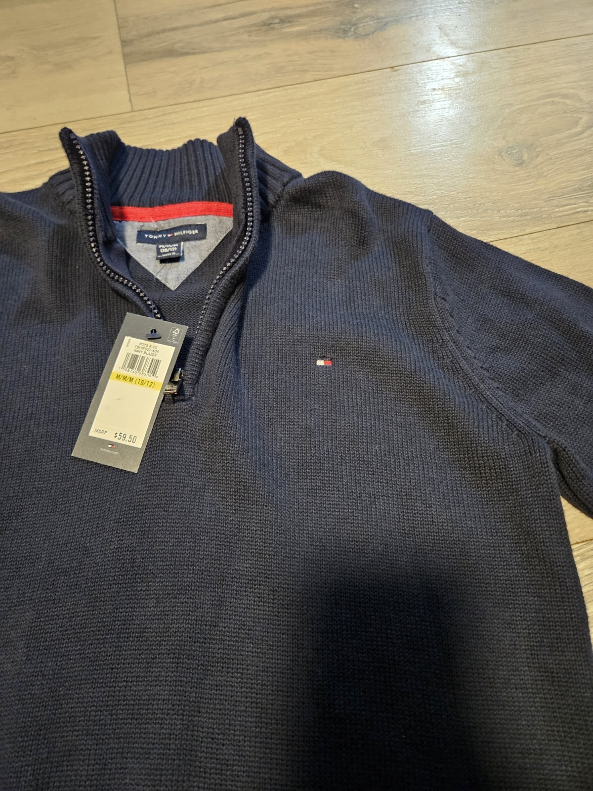 как выглядит NWT Tommy Hilfiger Boys M 10/12 Quarter-zip Sweater Navy Blue Cotton фото