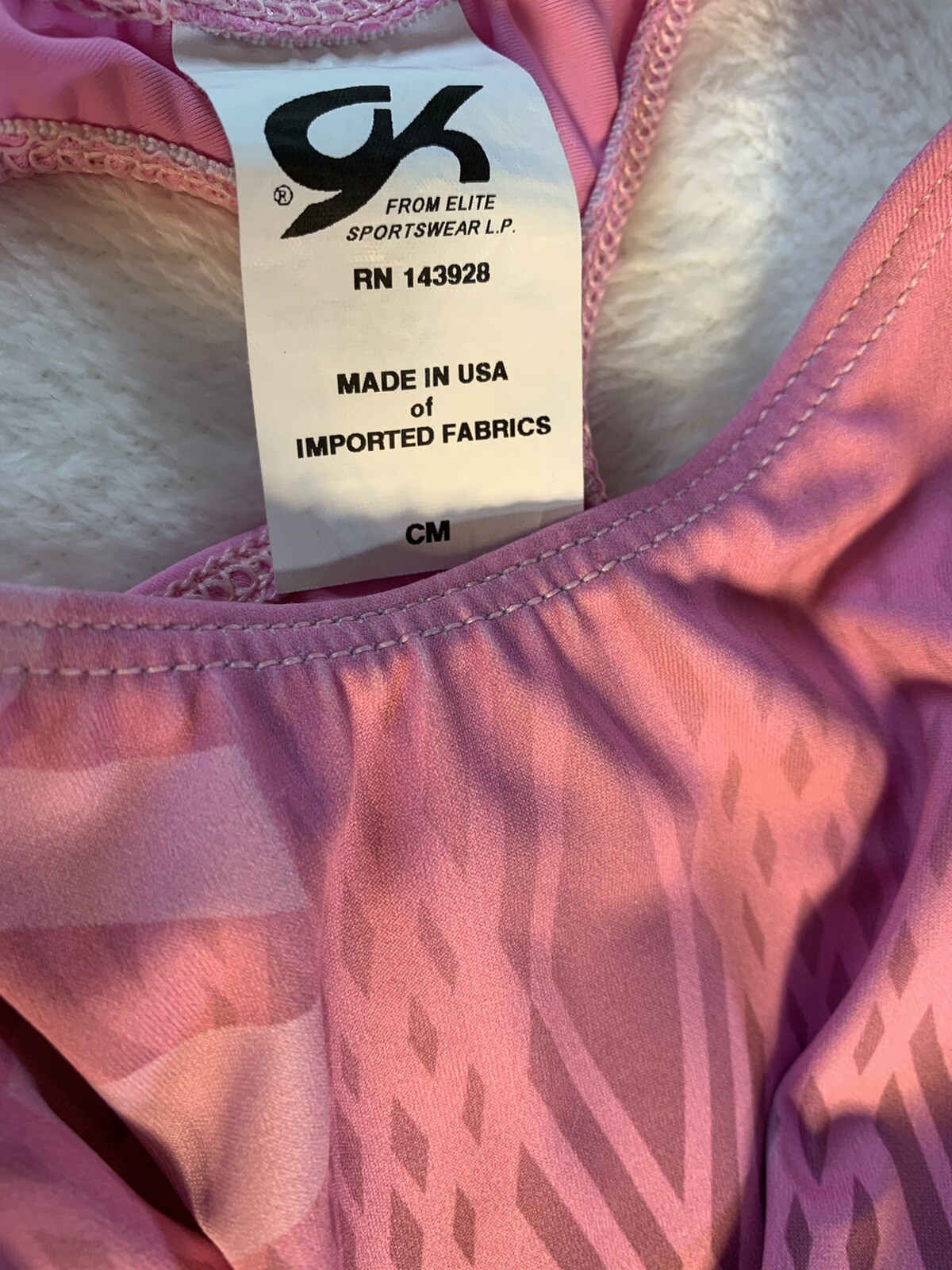 GK ELITE Leotard GYMNASTICS Pink Graphic Down Side RACERBACK TANK Leo SIZE: CM