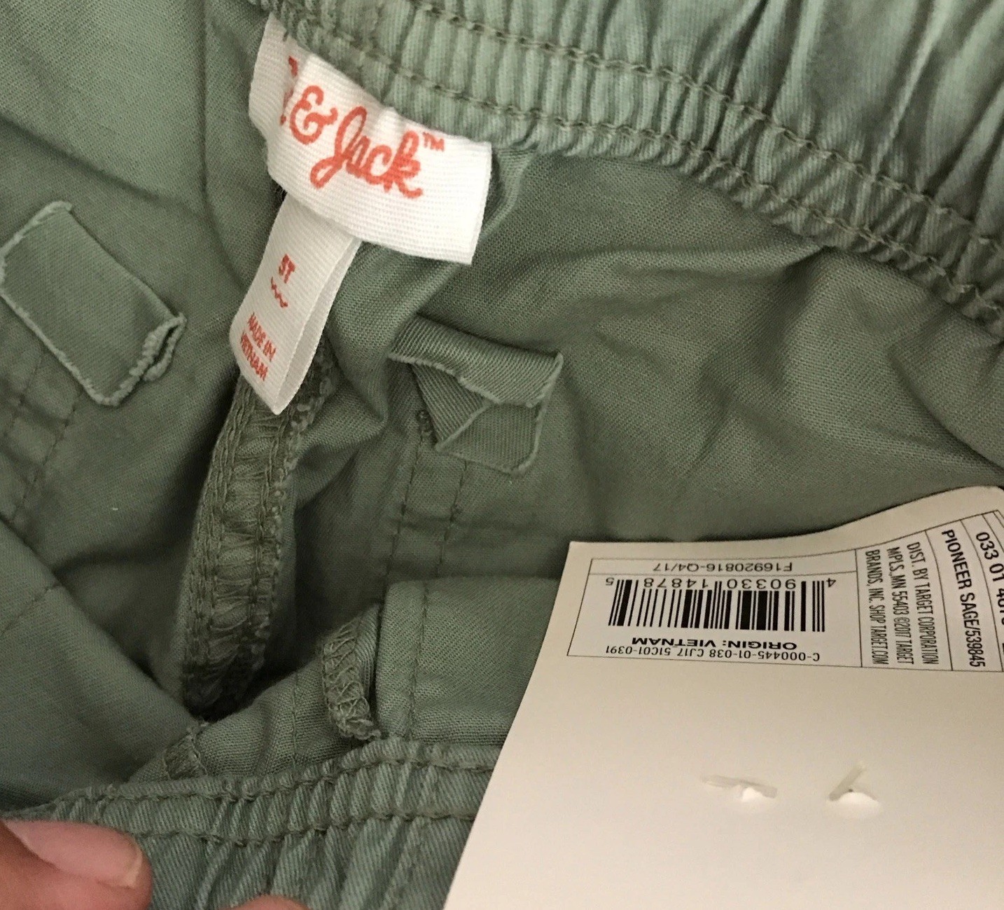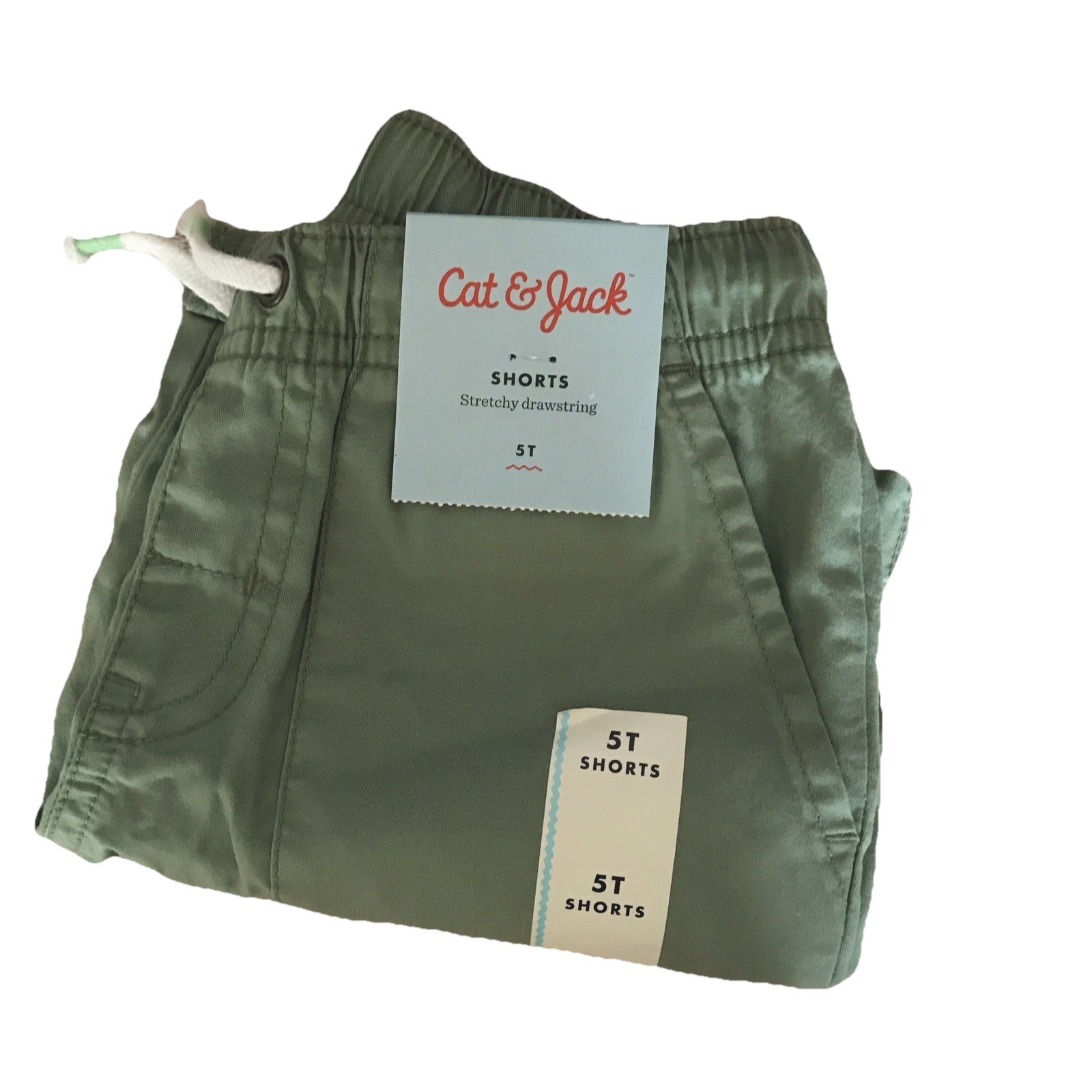 Cat Jack Elastic Stretchy Drawstring Green Cuffed Shorts Kids Size 5T With Tag
