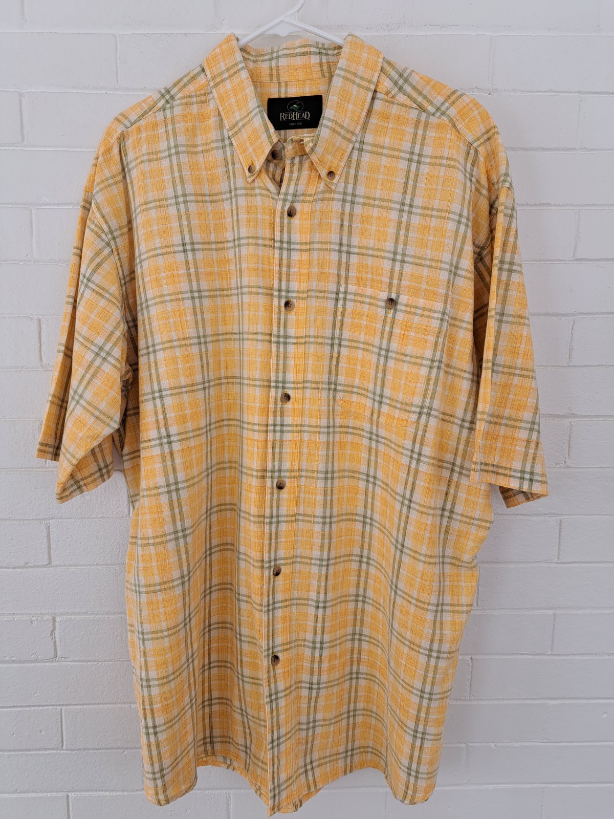 Redhead Short Sleeve Shirt Men's Button Up XL Orange Green Plaid 100 Cotton