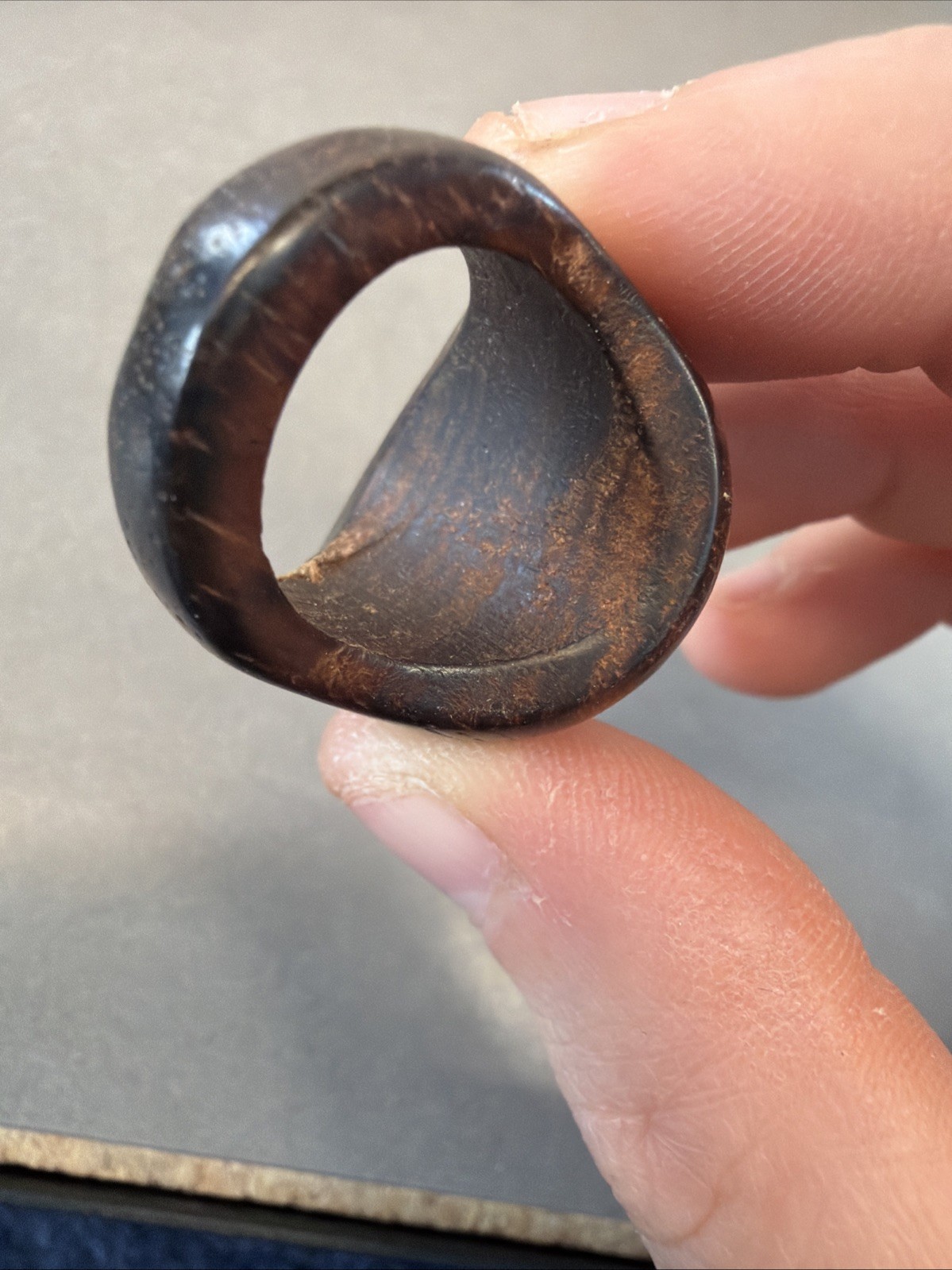 как выглядит Jw1 Carved Dark Brown Wooden Domed Ring Band, Size 6.26 C190 фото