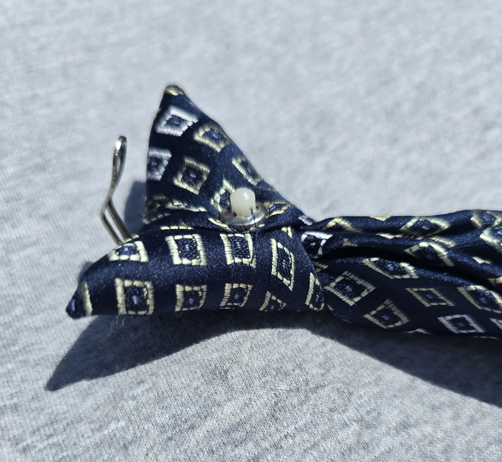 Boy's George Navy Clip On Tie w/ Yellow and Gold Diamond Pattern