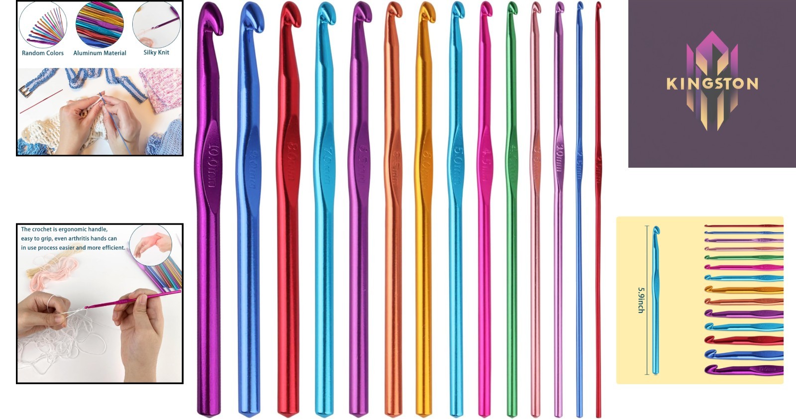 Comprehensive 14-Piece Aluminum Crochet Hooks with Colorful Handles for Easy Use