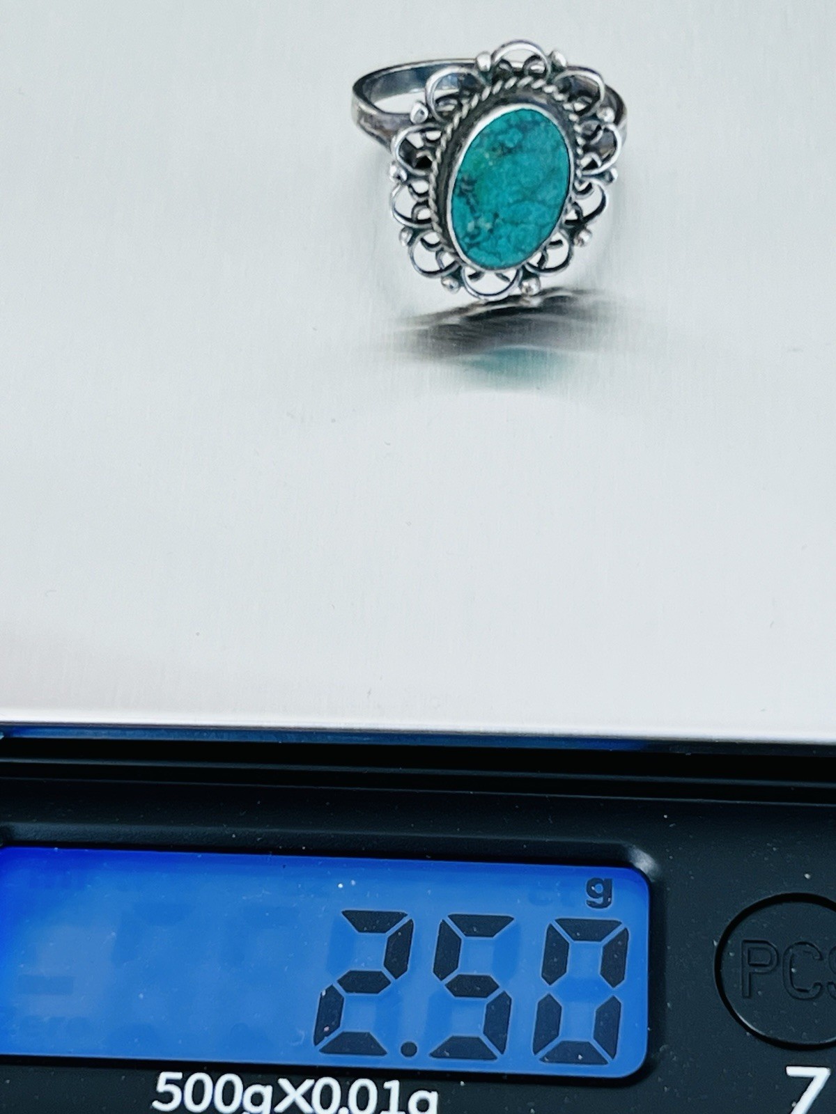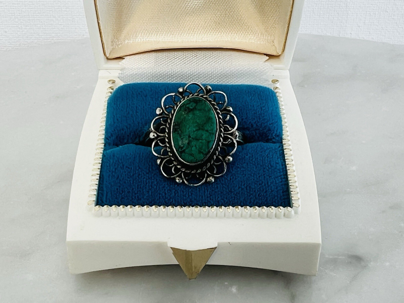 Vintage 925 Sterling Silver Native American Green Turquoise Ring Size 5.5