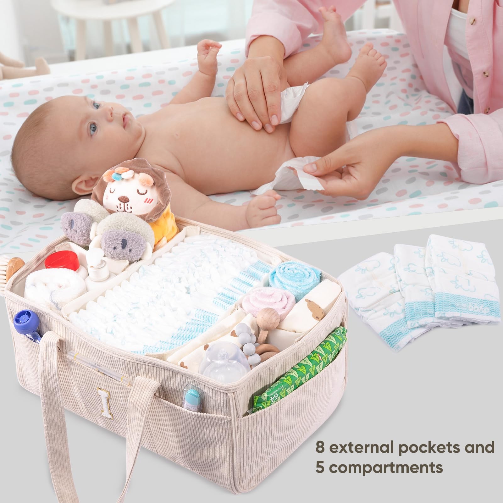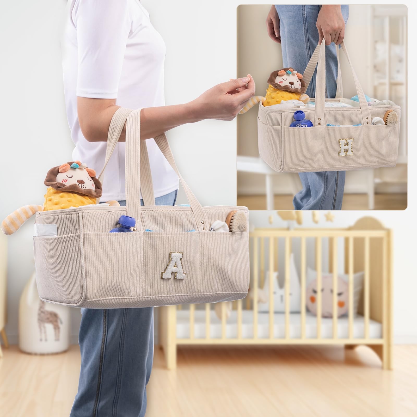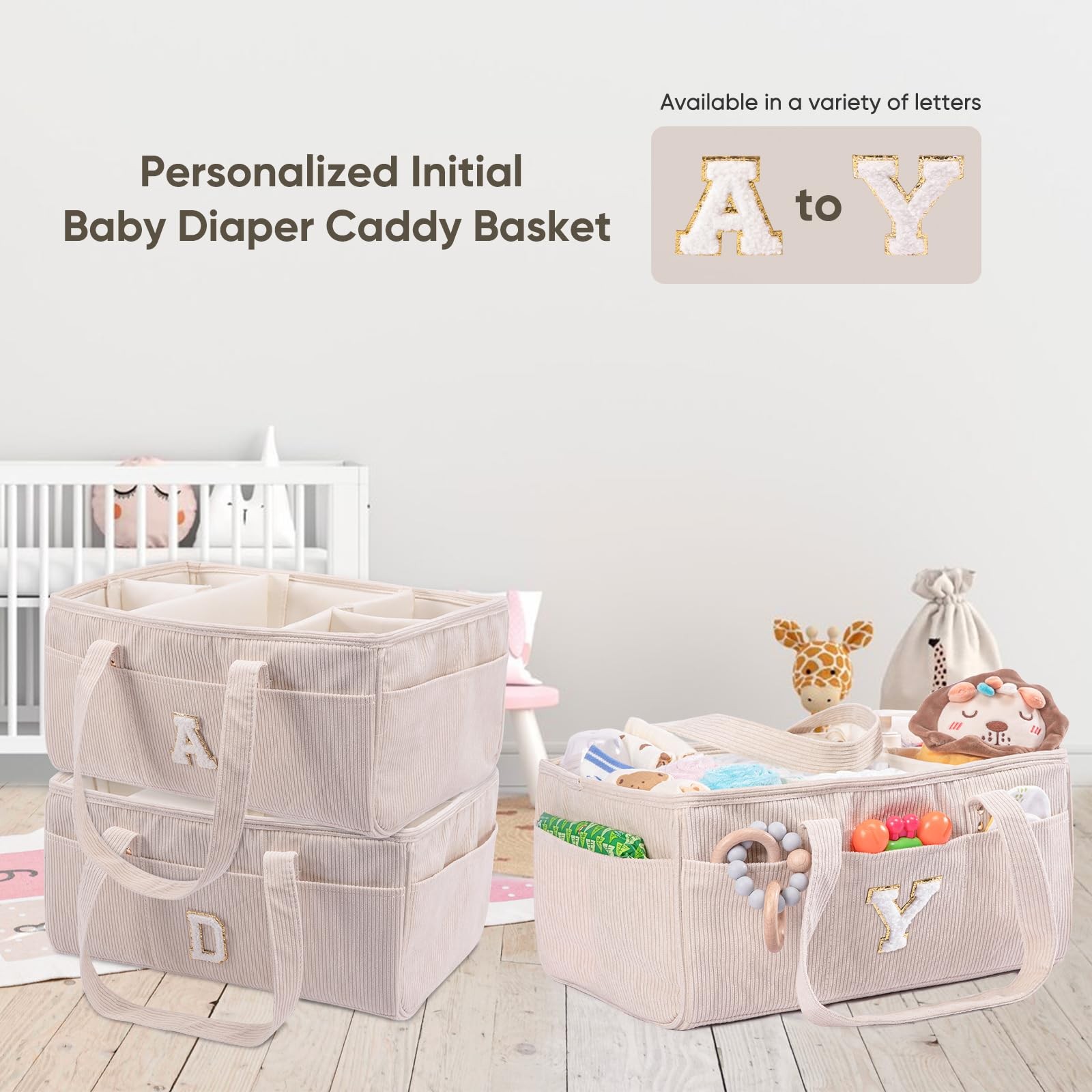 Initial Personalized Diaper Caddy Organizer, Baby Storage Basket for Diapers ...