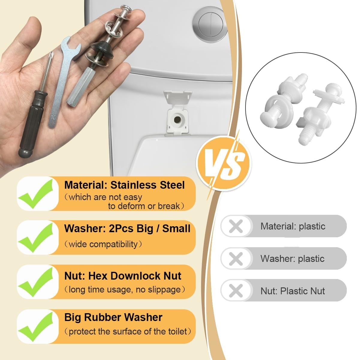 Toilet Seat Screws Replacement Kit, Toilet Seat Bolts Replacement Kit, Heavy Dut
