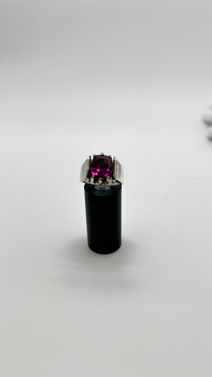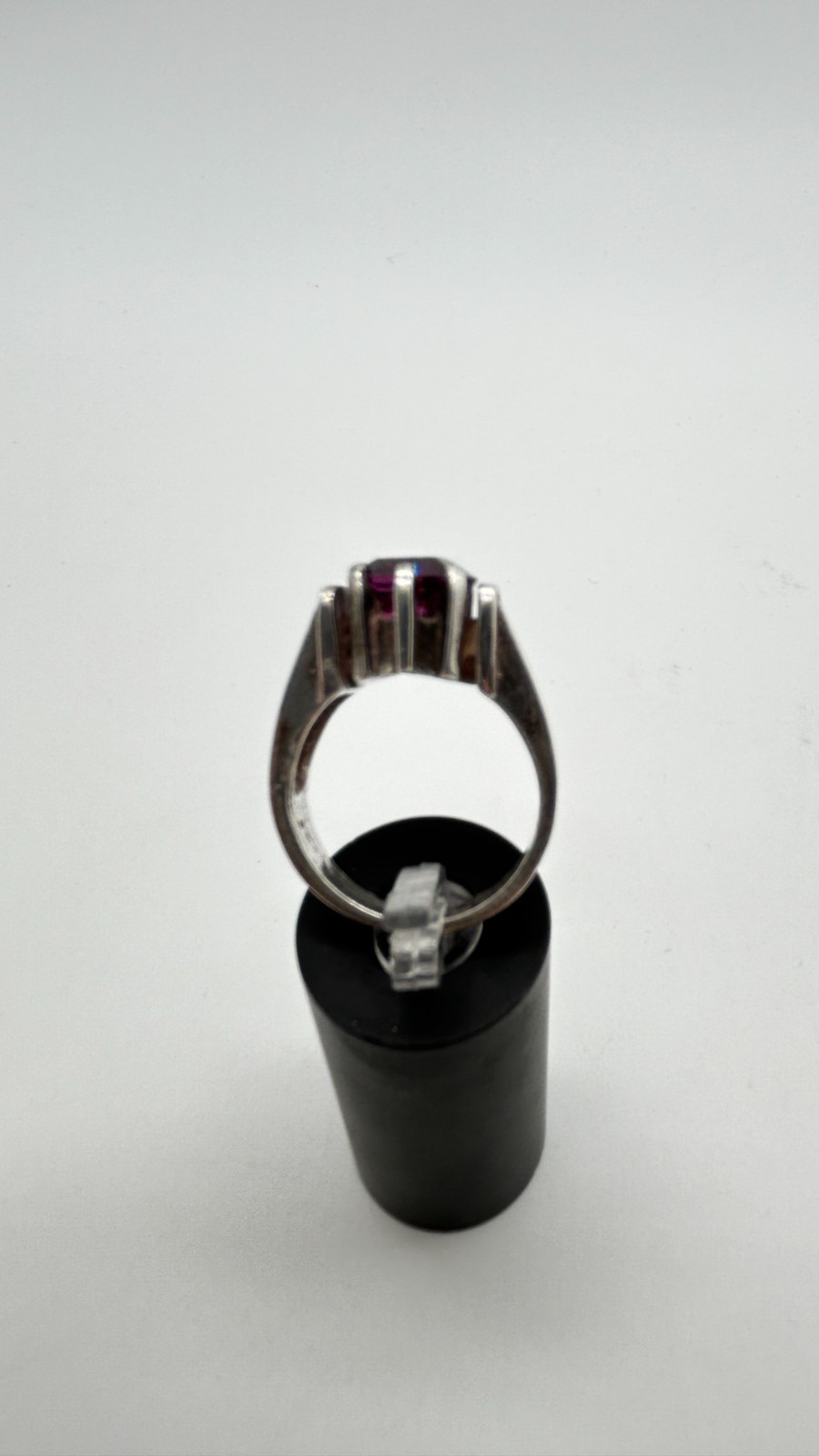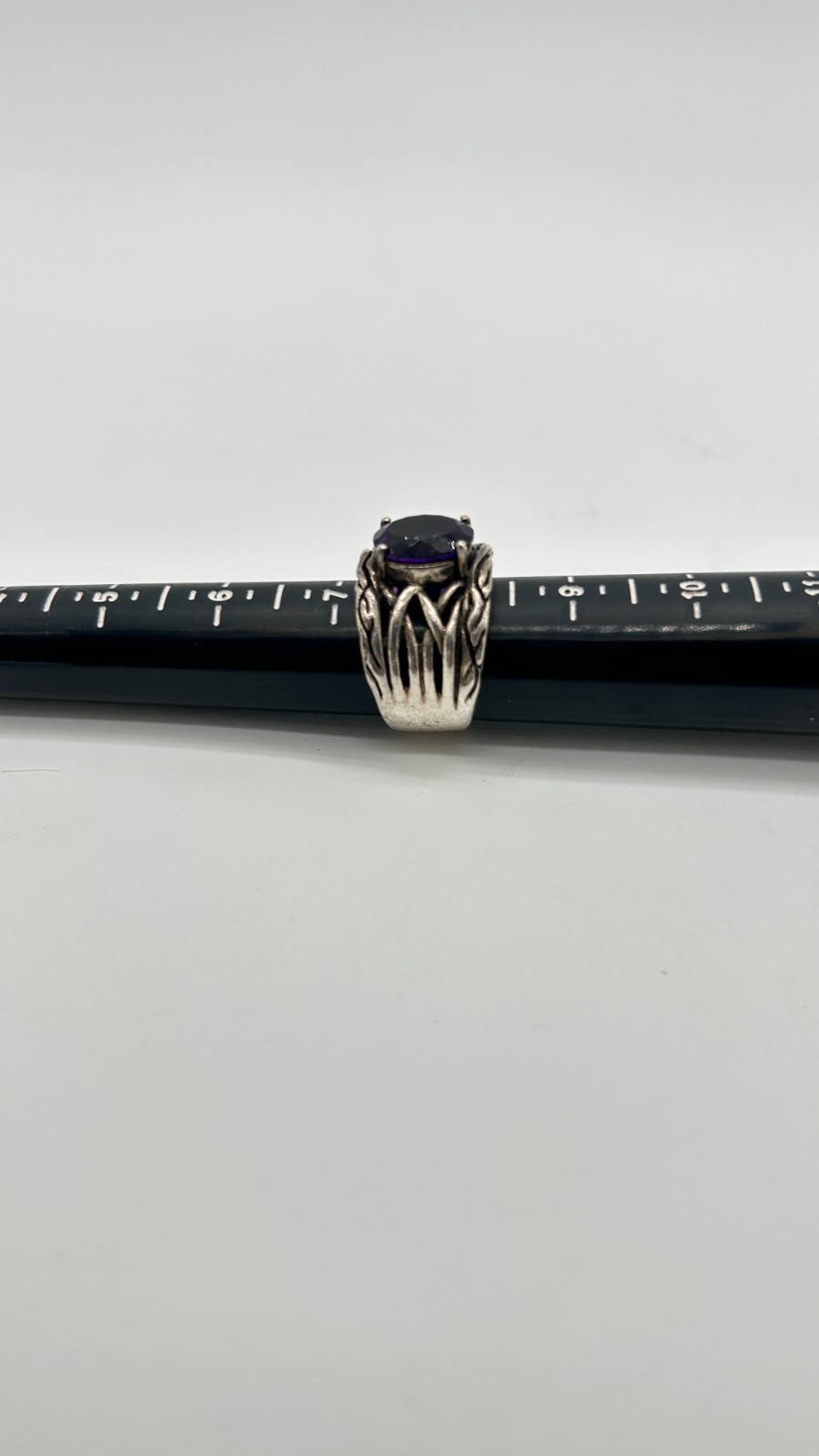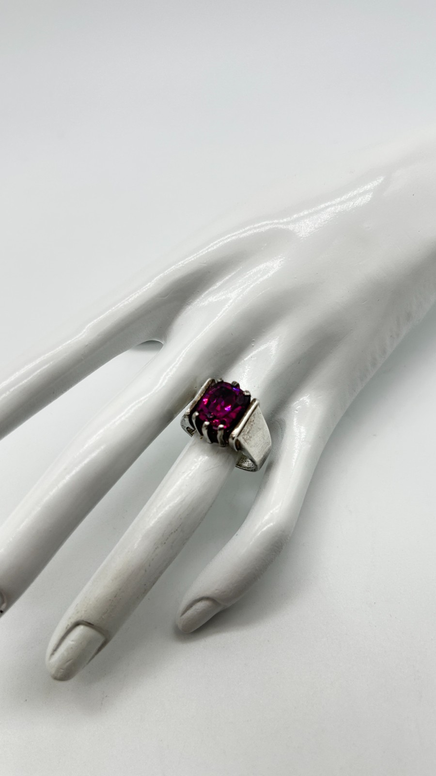 как выглядит Vintage Sterling Silver Ring Purple Glass Stone Retro Cocktail Jewelry Size фото