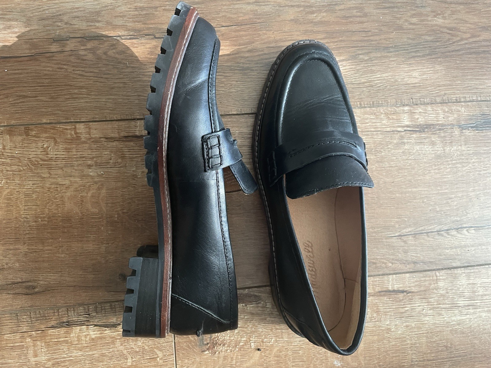 как выглядит Madewell Corinne Black Leather Lug Sole Loafer Size 8 фото
