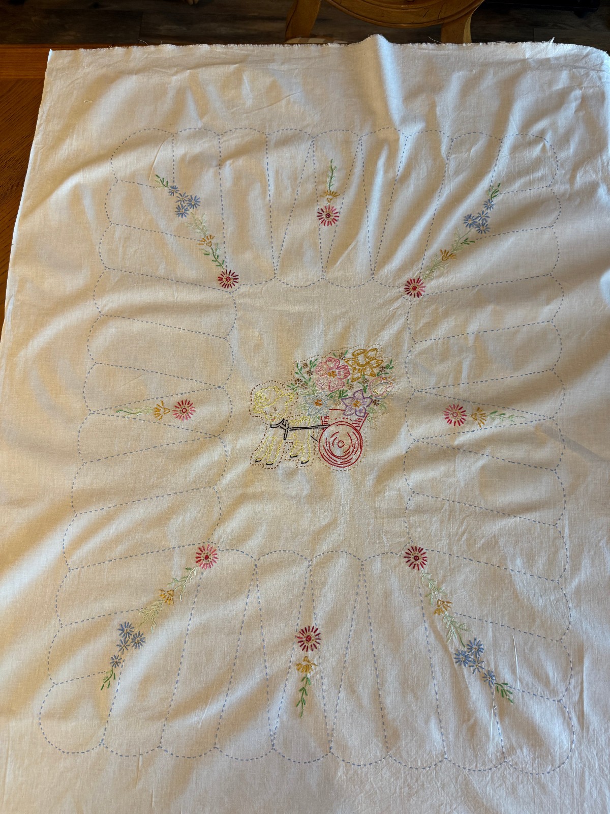 Vintage Embroidered Baby Quilt Top w/ Lamb