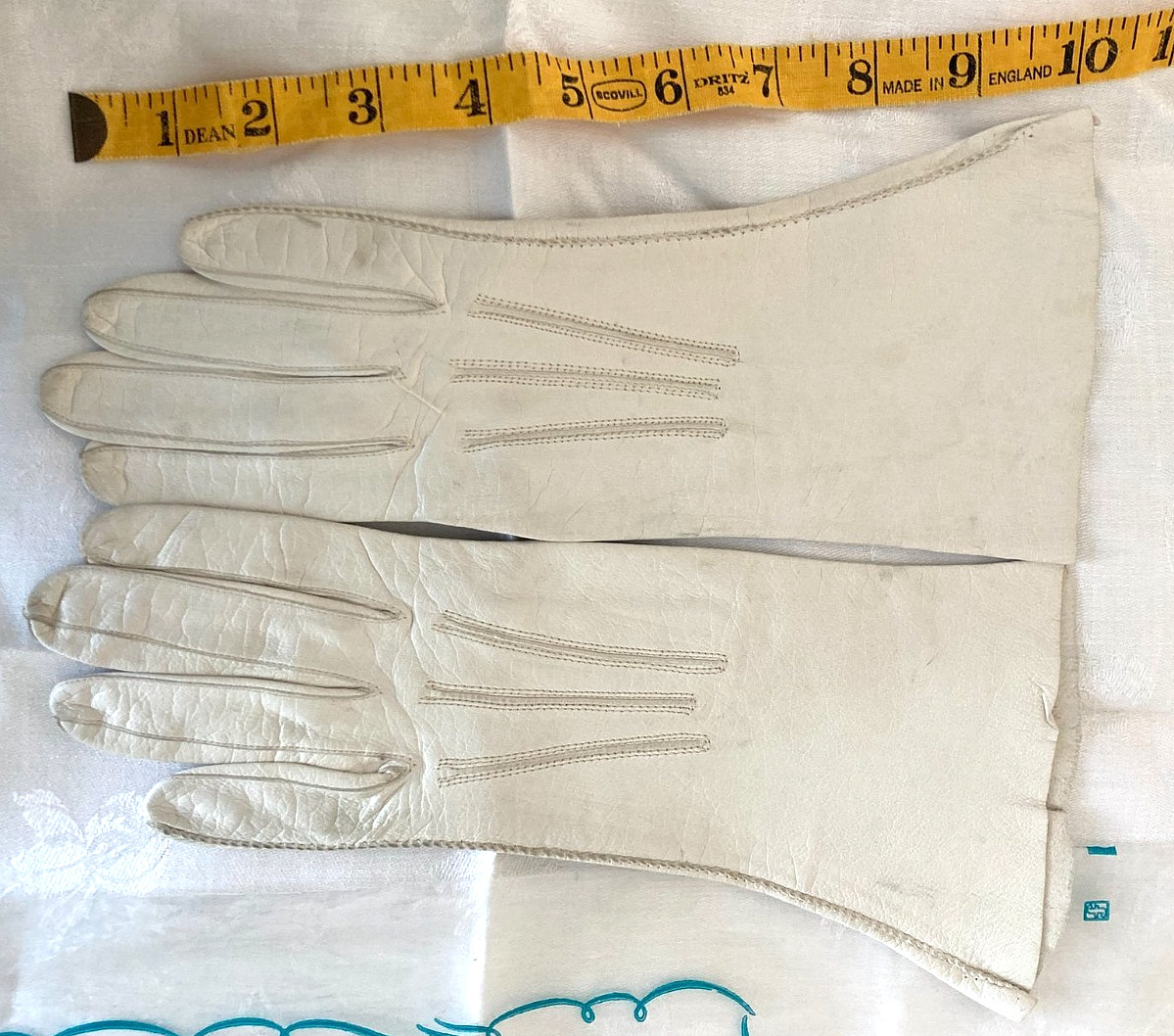 Vintage PAIR of Van Raalte SOFTEE Ivory K-F-6243 LEATHER GLOVES Made in Philipp.