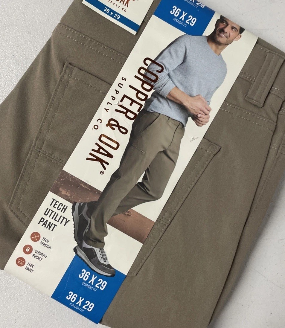 как выглядит Copper Oak Mens Tech Utility Pants Straight Fit Stretch Flex Waist TAN 36x29 фото