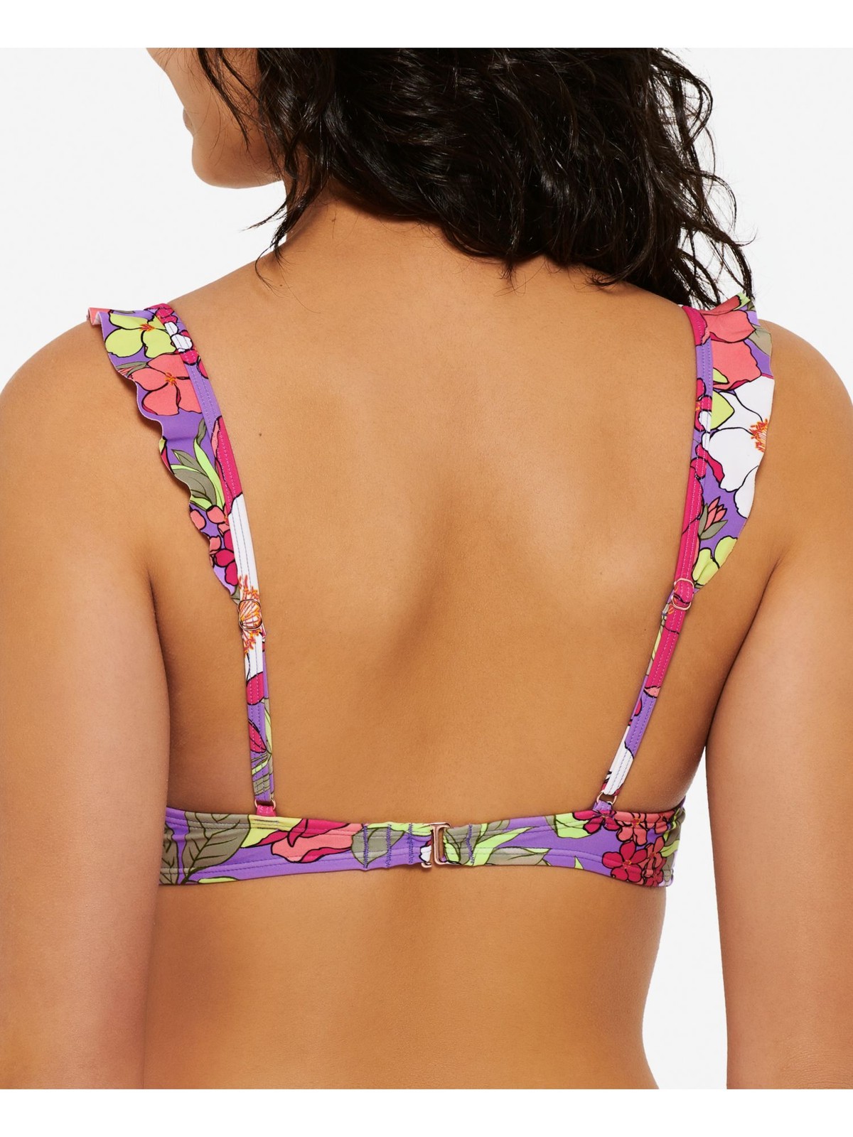 HULA HONEY Women's Multi Color Smocked Impressionist Bloom Swimsuit Top M