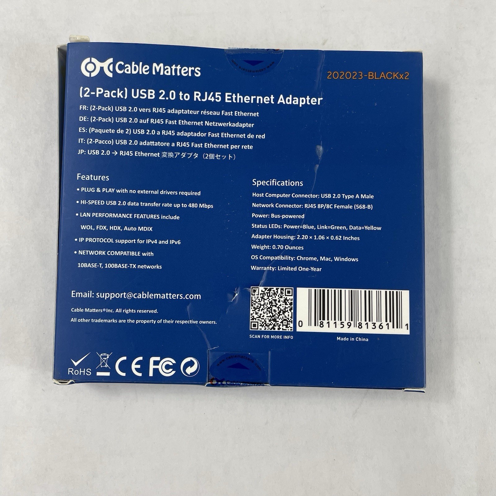 Cable Matters USB 2.0 to RJ45 10/100 Fast Ethernet Network Adapter Pack of 2