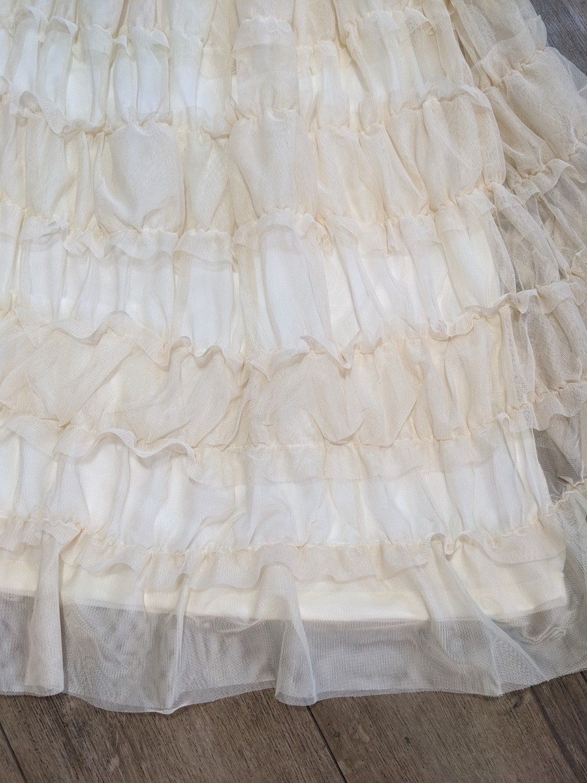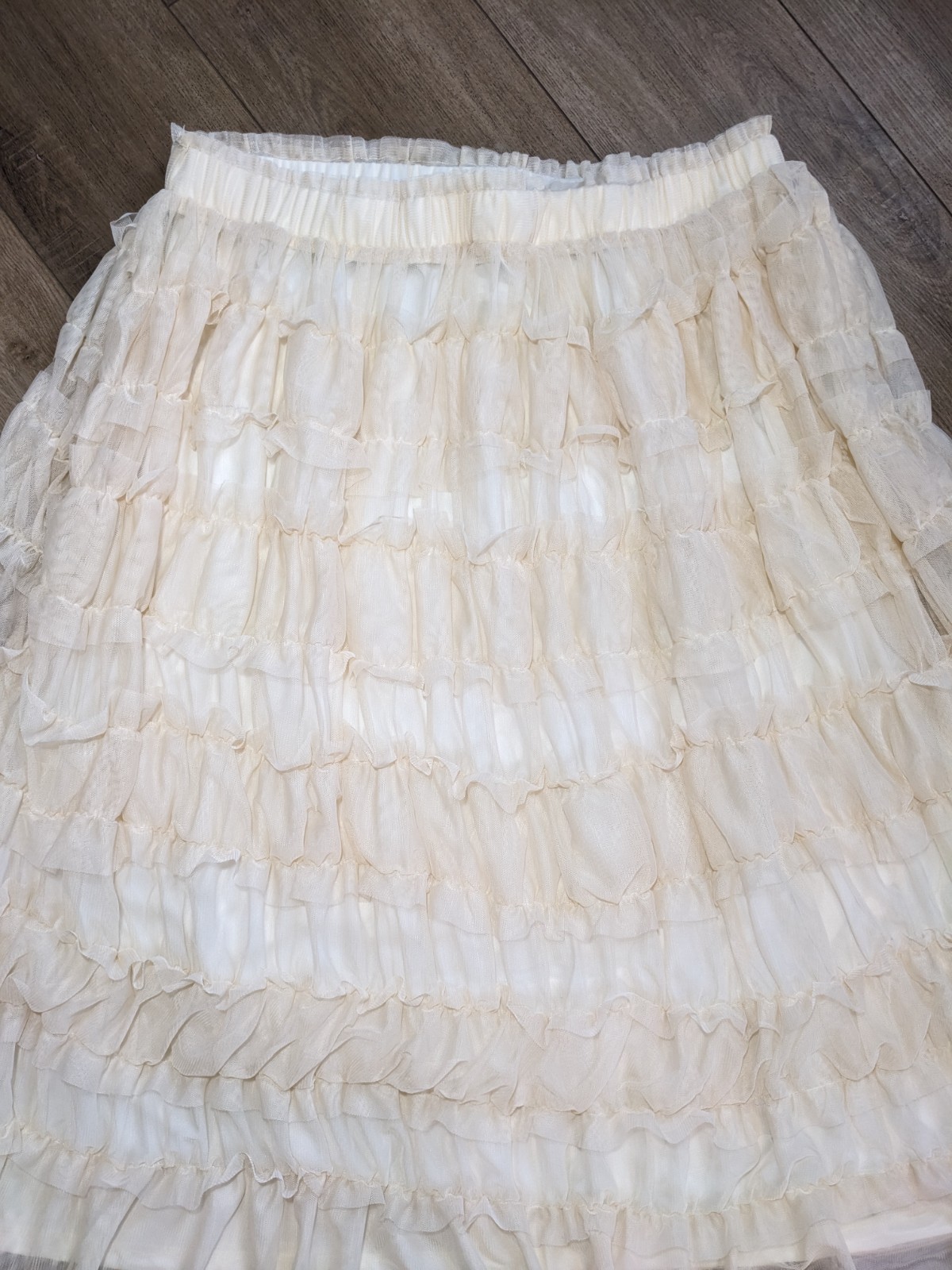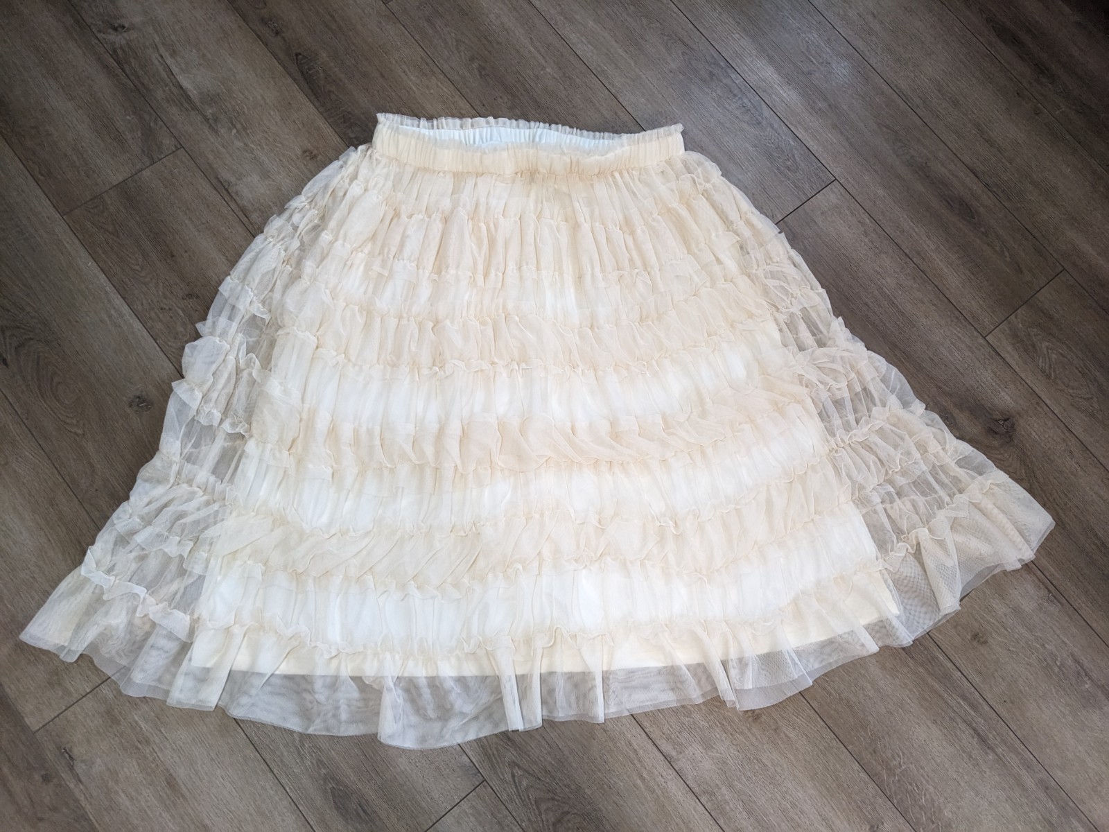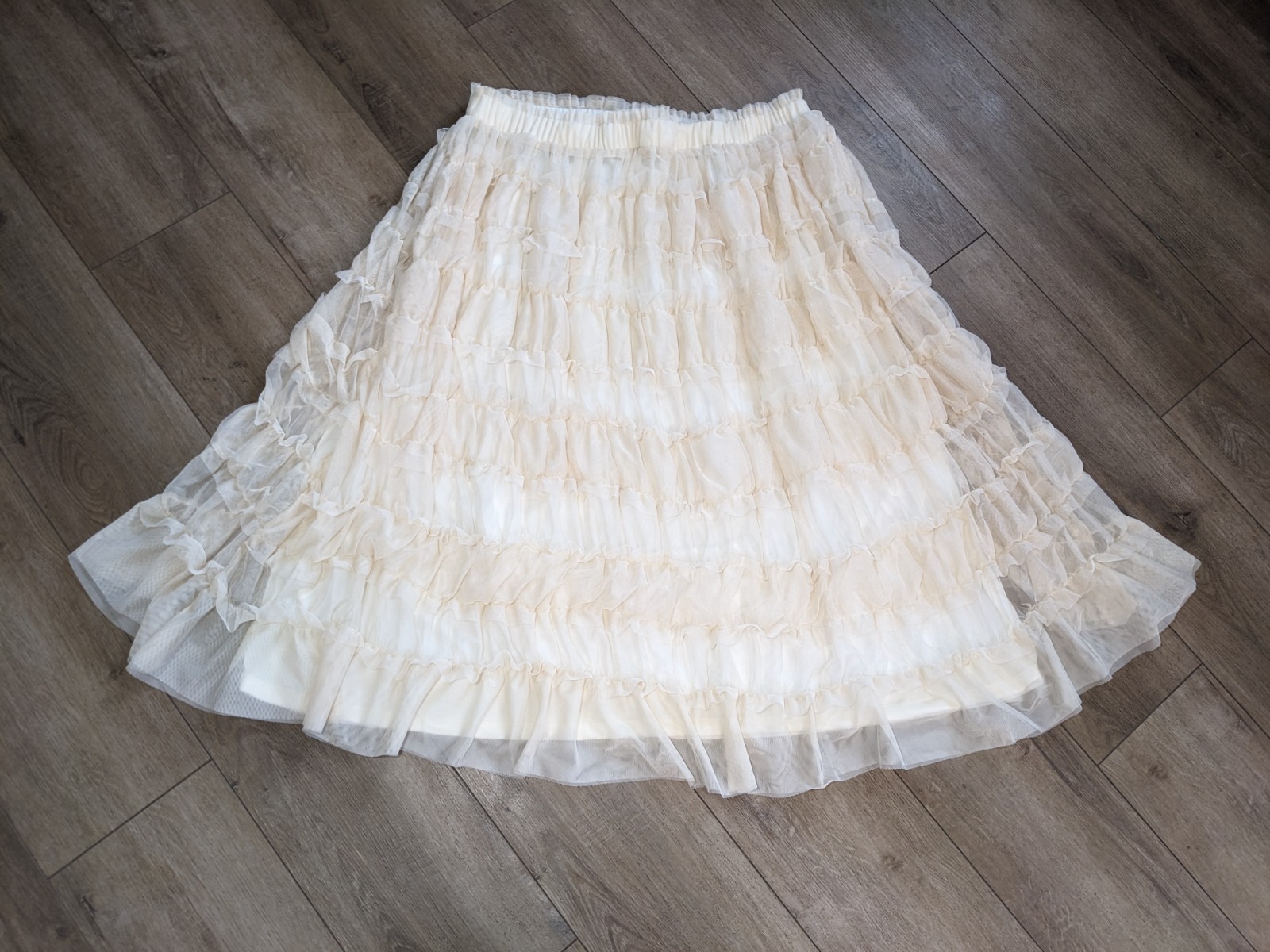 как выглядит NEW Cato Frosted Almond Ruffled Mesh Below Knee Romantic Boho Skirt XL фото