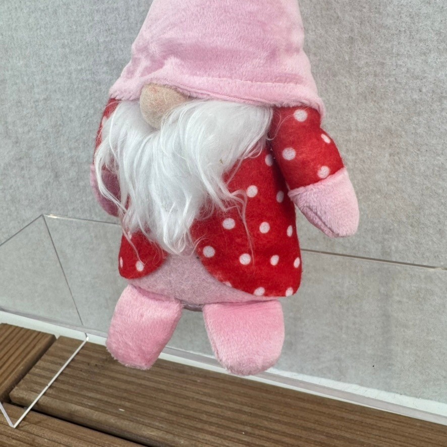 Valentines Day Gnome 8 Plush Pink Heart Red Polka Dot Tabletop Decor