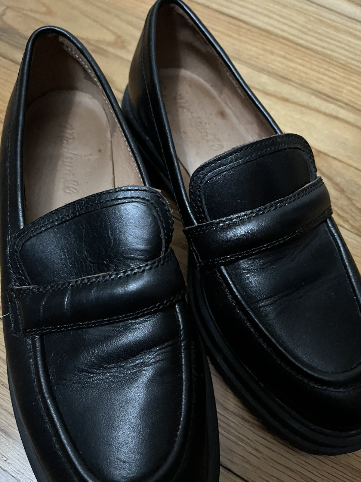 как выглядит Madewell Bradley Lugsole Leather Black Loafer Size 7 фото