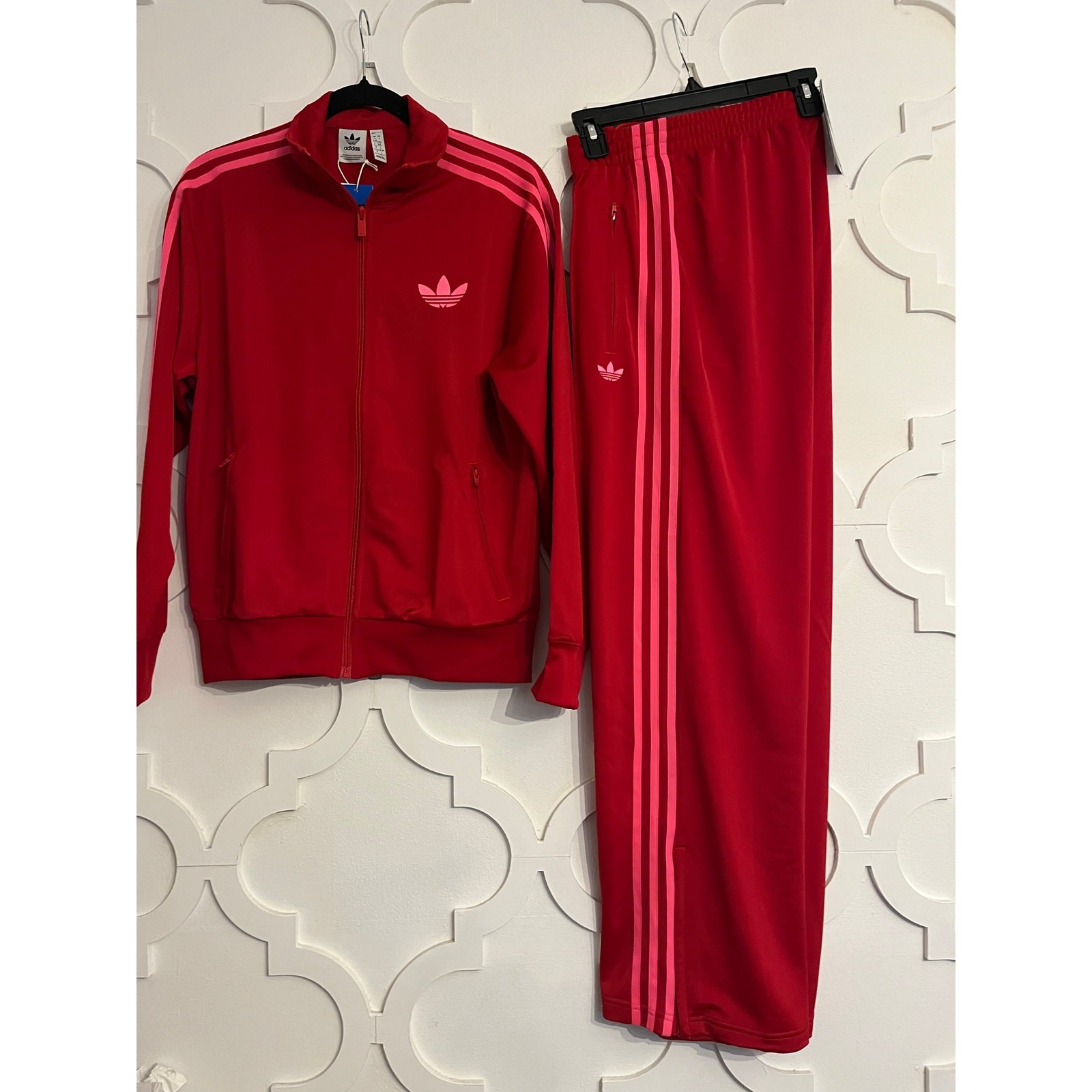 как выглядит NEW ADIDAS Adicolor Firebird Womens Size Medium Tracksuit Red / Pink фото