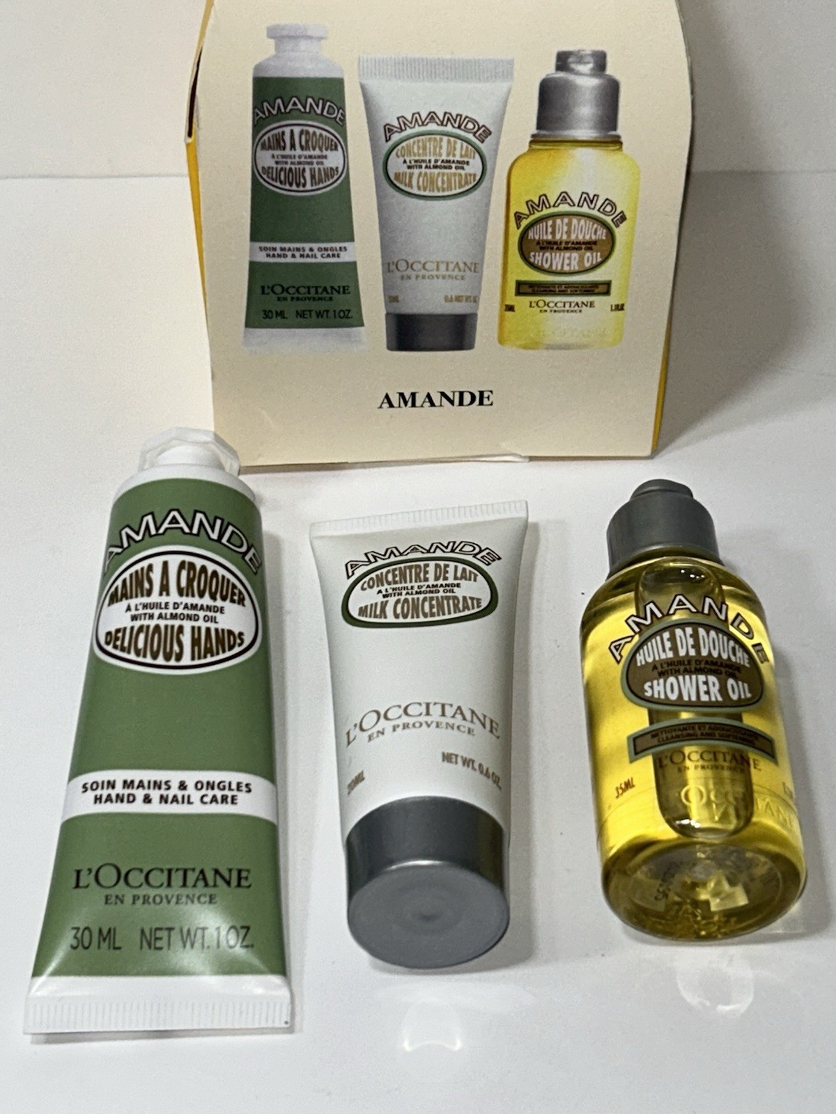 L OCCITANE AMANDE SET Delicious Hands, Milk Concentrate Shower Oil, 3 Pc Set