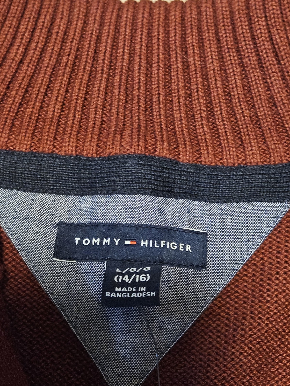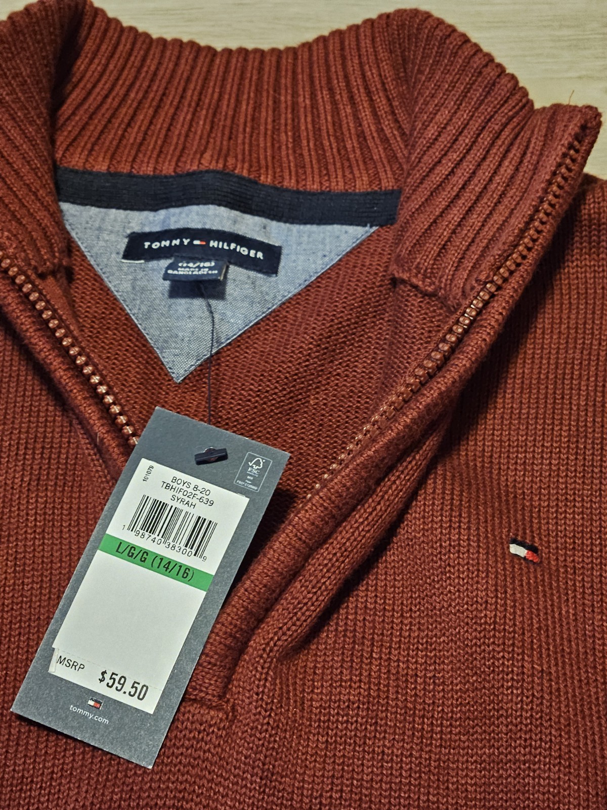 как выглядит NWT Tommy Hilfiger Boys L 14/16 Quarter-zip Sweater Syrah Cotton фото