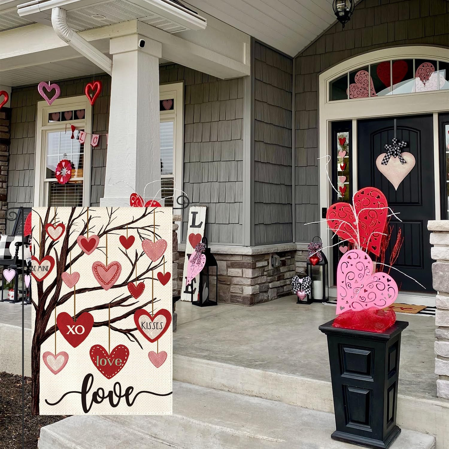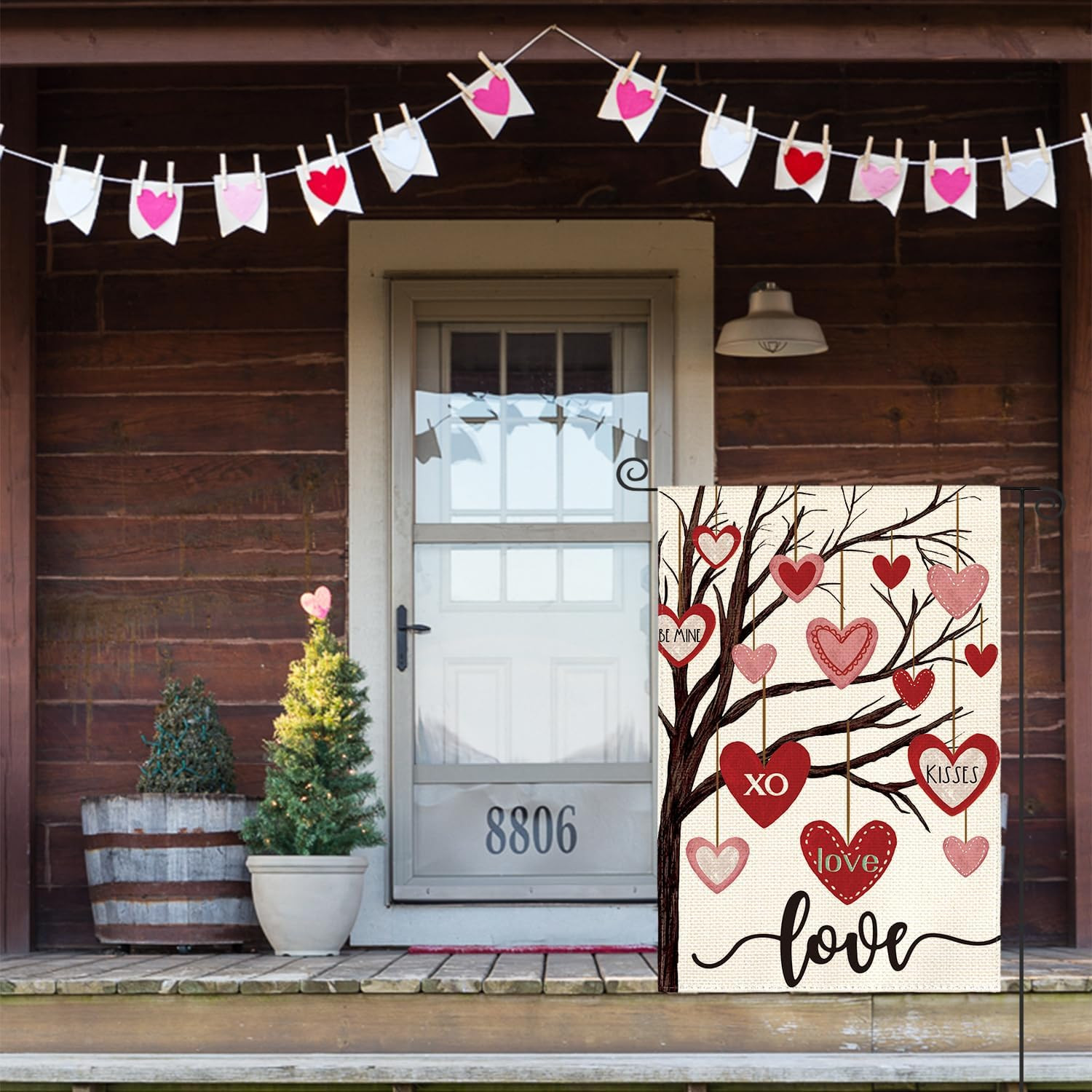 Valentines Day Garden Flag 12X18 Inch Double Sided Outside, Love Heart Tree Rust