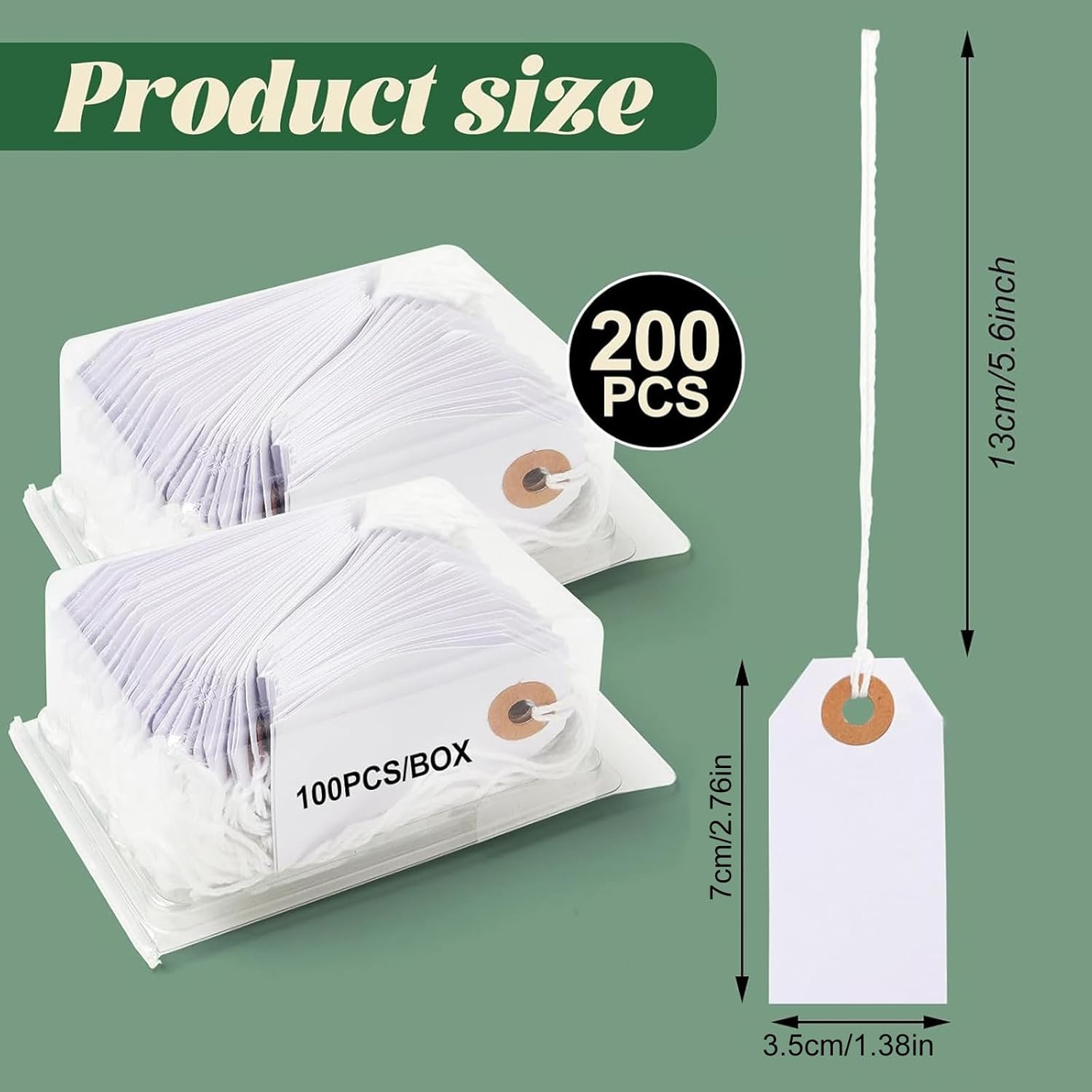 200 White Sale Tags with String, 2.8 x 1.5 Reinforced Hole for Office, Gift, an