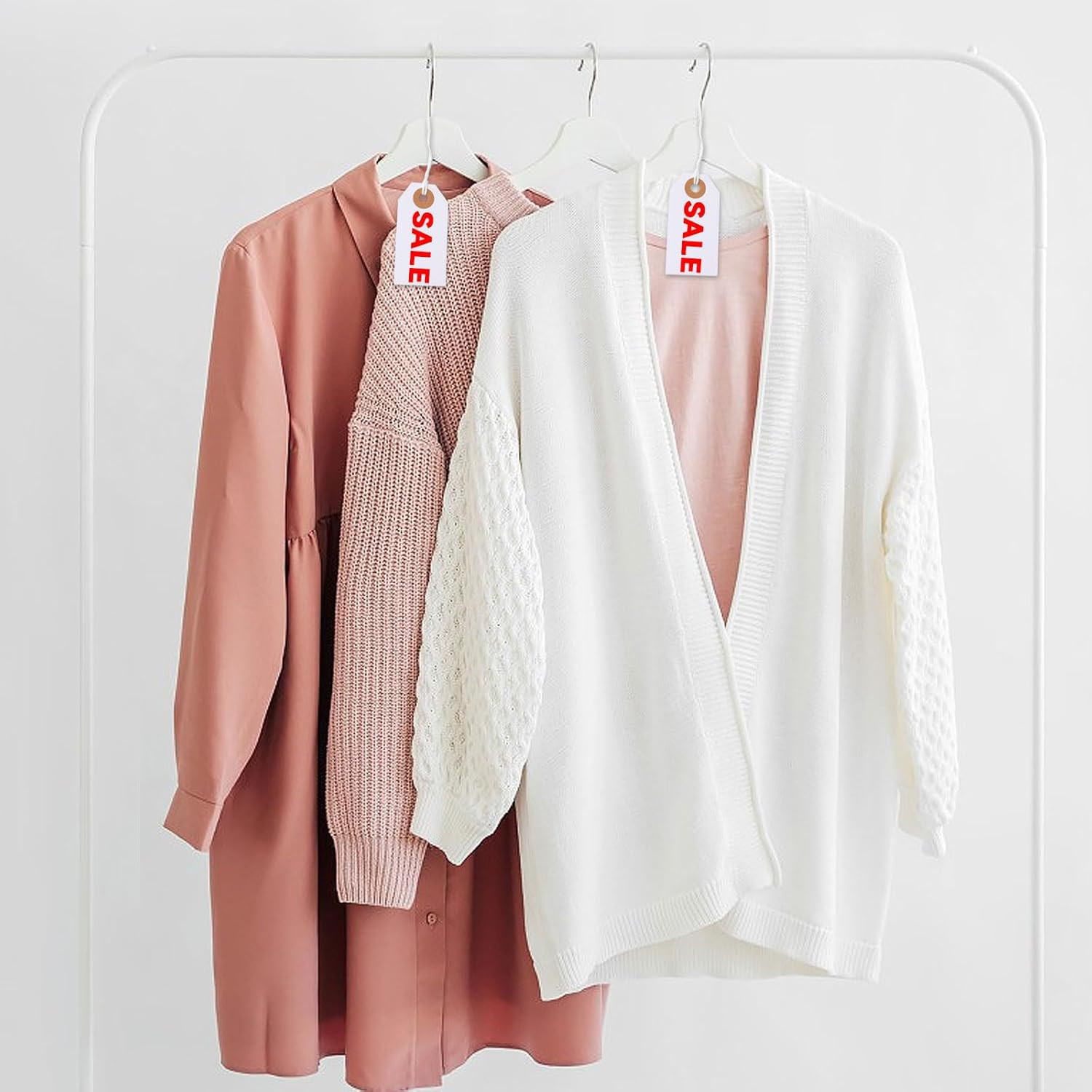 как выглядит 200 White Sale Tags with String, 2.8 x 1.5" Reinforced Hole for Office, Gift, an фото