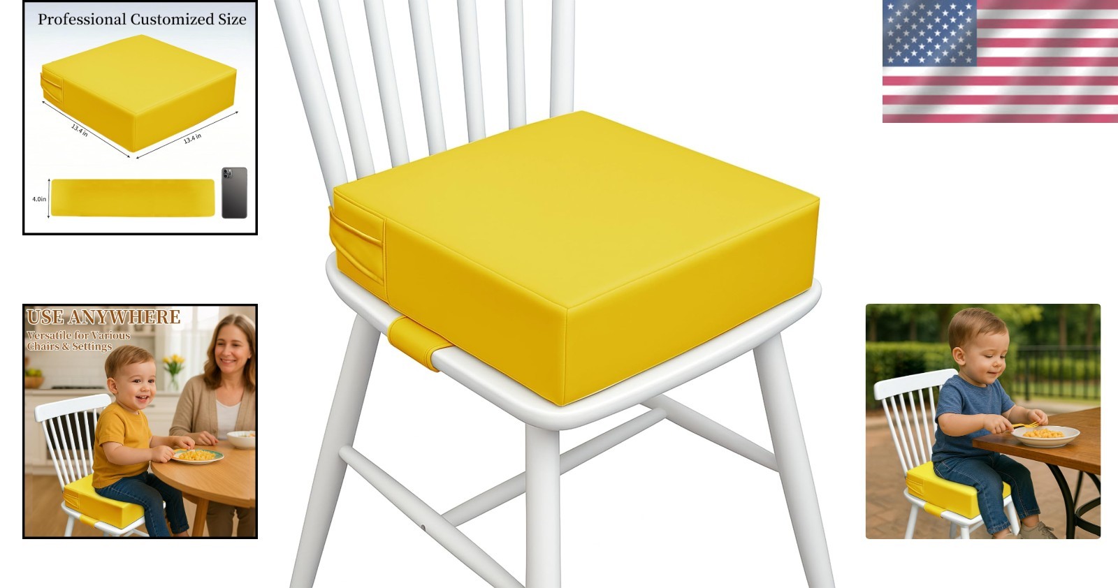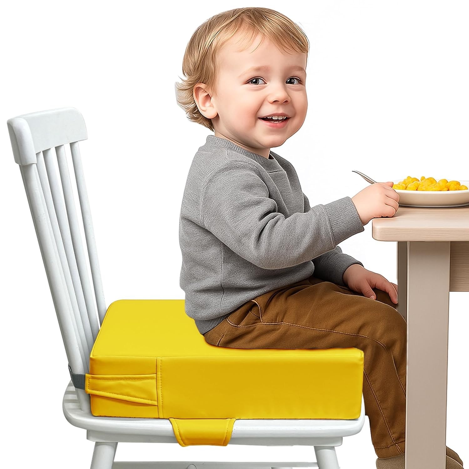 Toddler Booster Seat - Washable PU Cushion, Portable Safe in Yellow