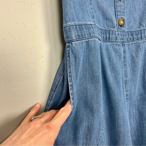 как выглядит Abercrombie Fitch Y2K Chambray Jumpsuit Women s Size S Smocked Back Pockets фото