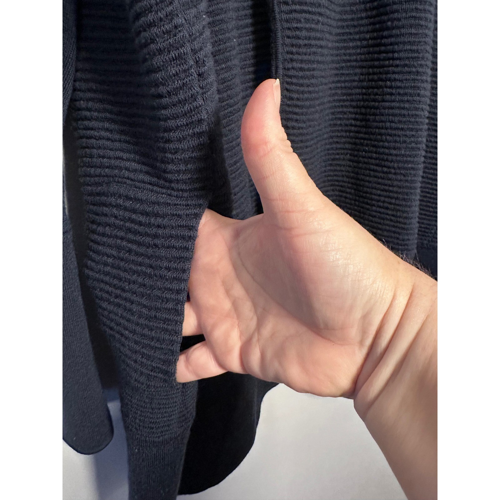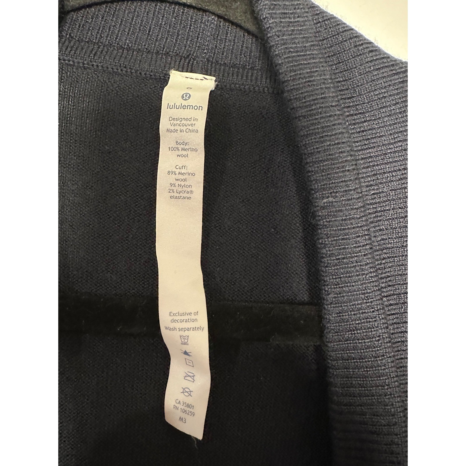 Lululemon Sit in Lotus Merino Wool Open Front Cardigan Navy Blue Pockets Warm