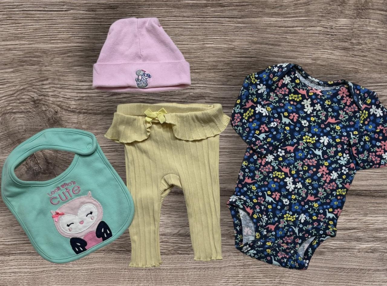 Set Includes: Activewear, Pants, Bodysuit, Romper, Bibs, Hats