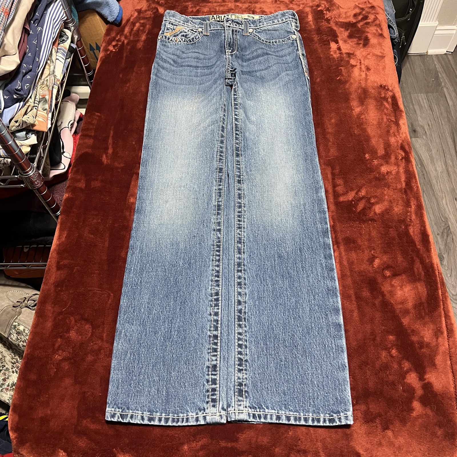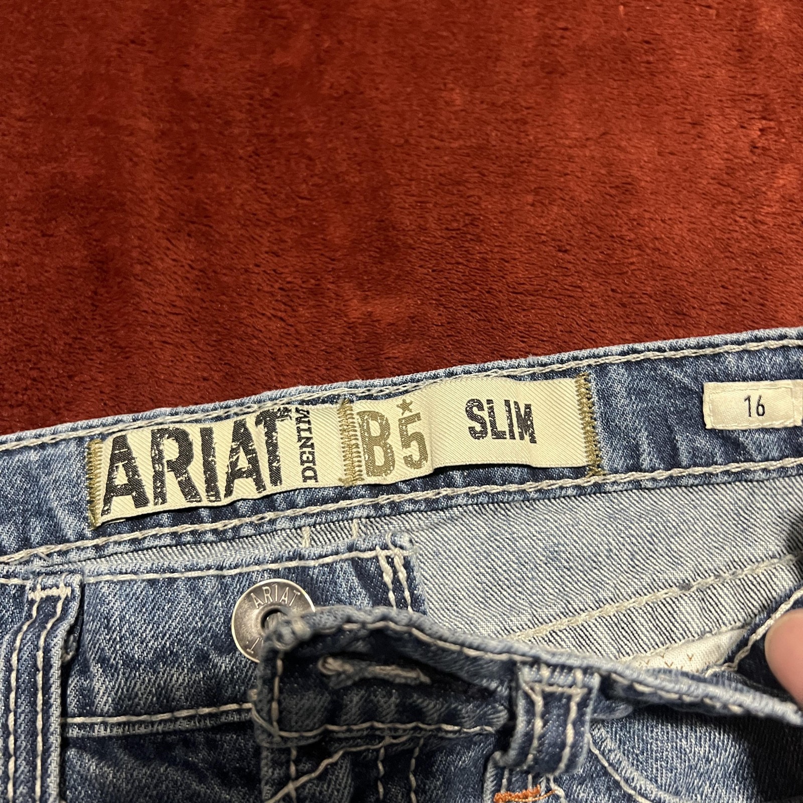 как выглядит Ariat B5 Slim Jeans Boys 16 Blue Medium Wash Straight Leg Embroidered Pockets фото