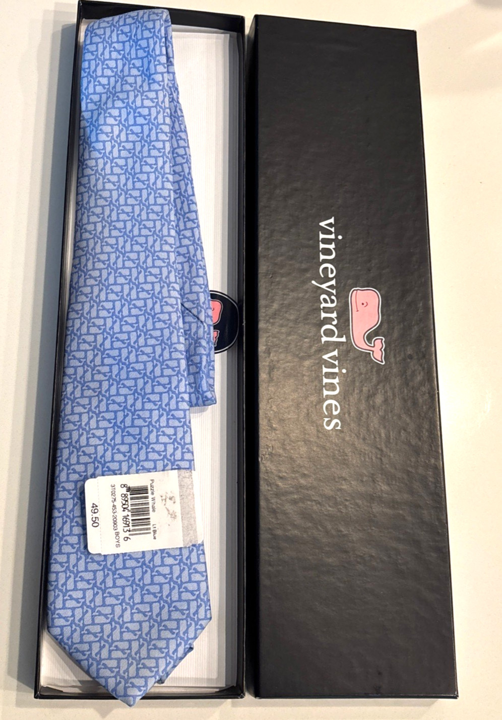 Vineyard Vines Boys Neck TIE Blue WHALE Motif Lt Blue VV NeckTie Made in USA