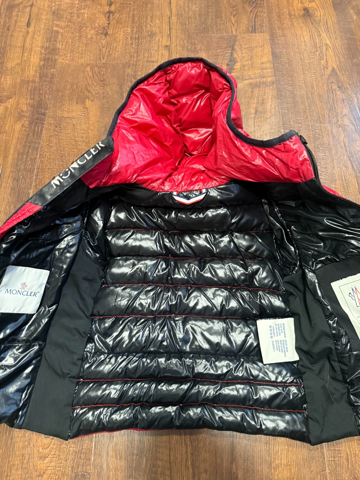 как выглядит Moncler Red Hooded Down Puffer Jacket Unisex Infant фото