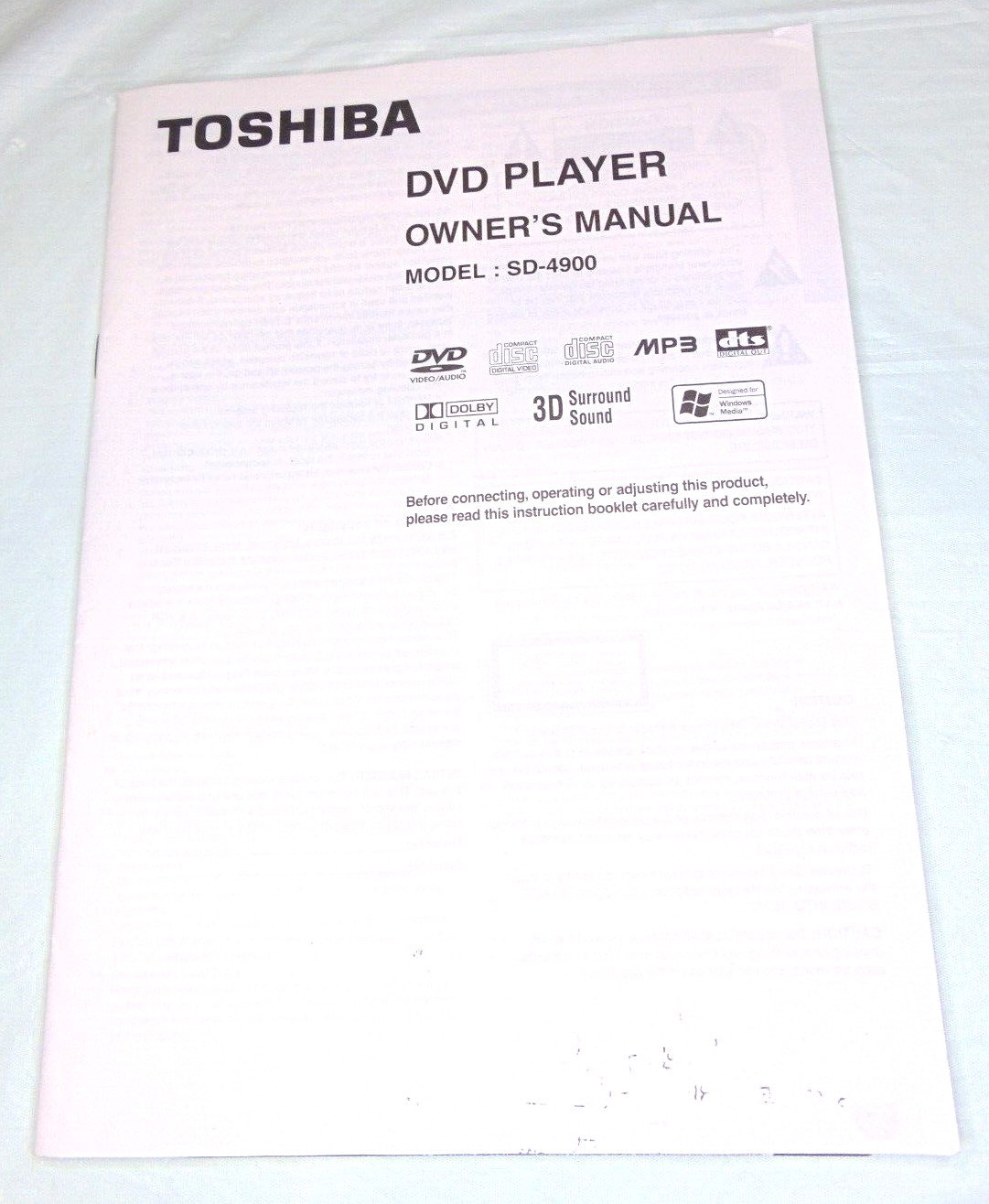 Toshiba MODEL SD-4900 DVD Video Player Original Owners Manual