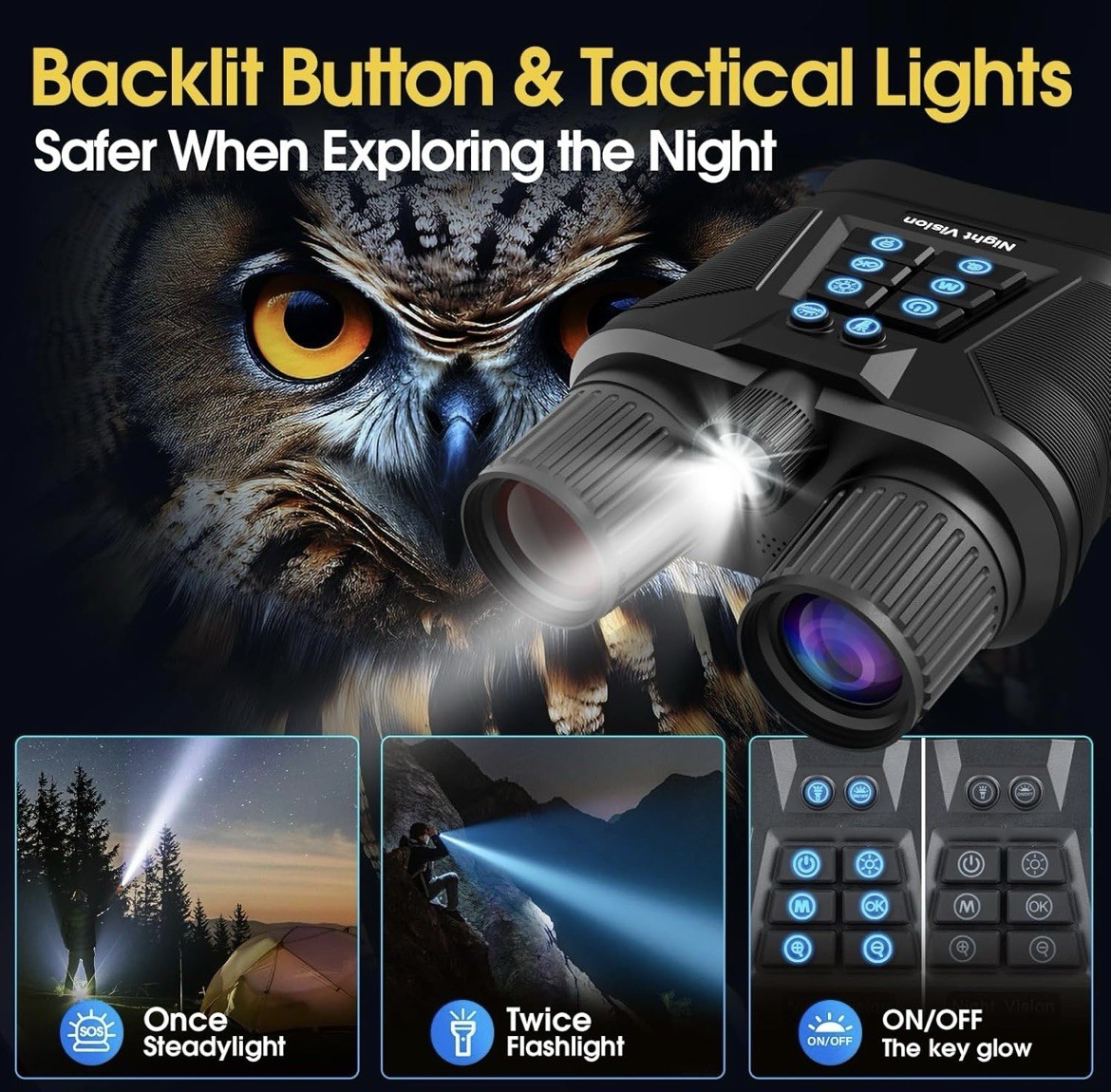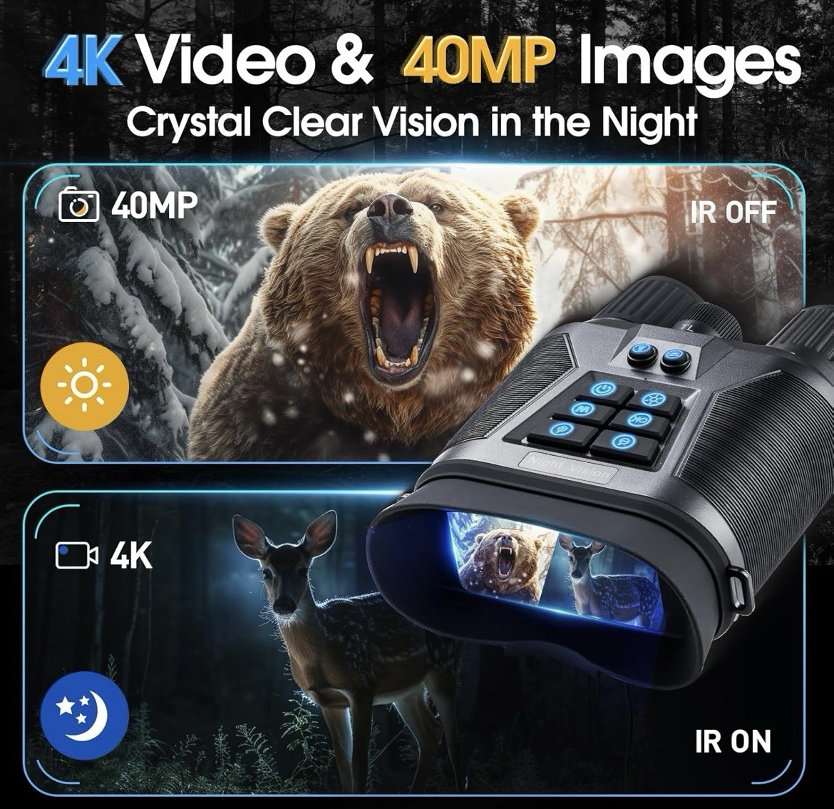 4K Night Vision Goggles/Binoculars/Flashlight 3 HD Screen 8X Digital Zoom