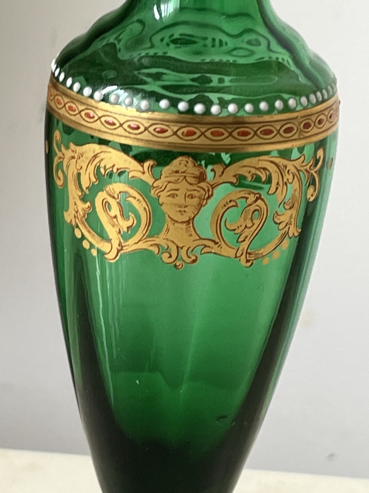 как выглядит Baccarat, Emerald Green Crystal Soliflora Vase and Gold Enamel Decor, circa 1900 фото
